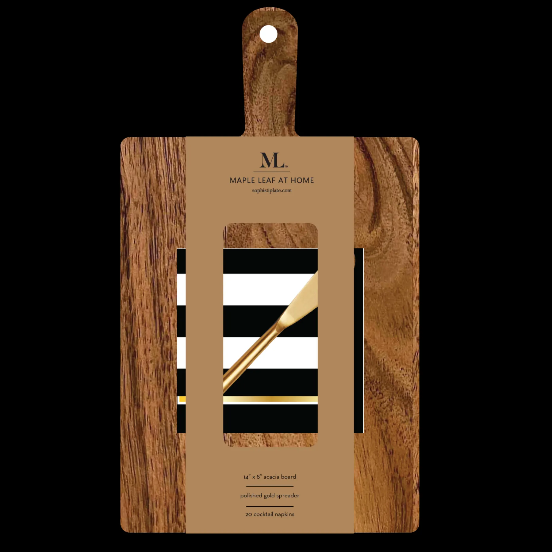 This kit is the perfect gift as it includes a gorgeous gold spreader knife and stylish cocktail napkins!