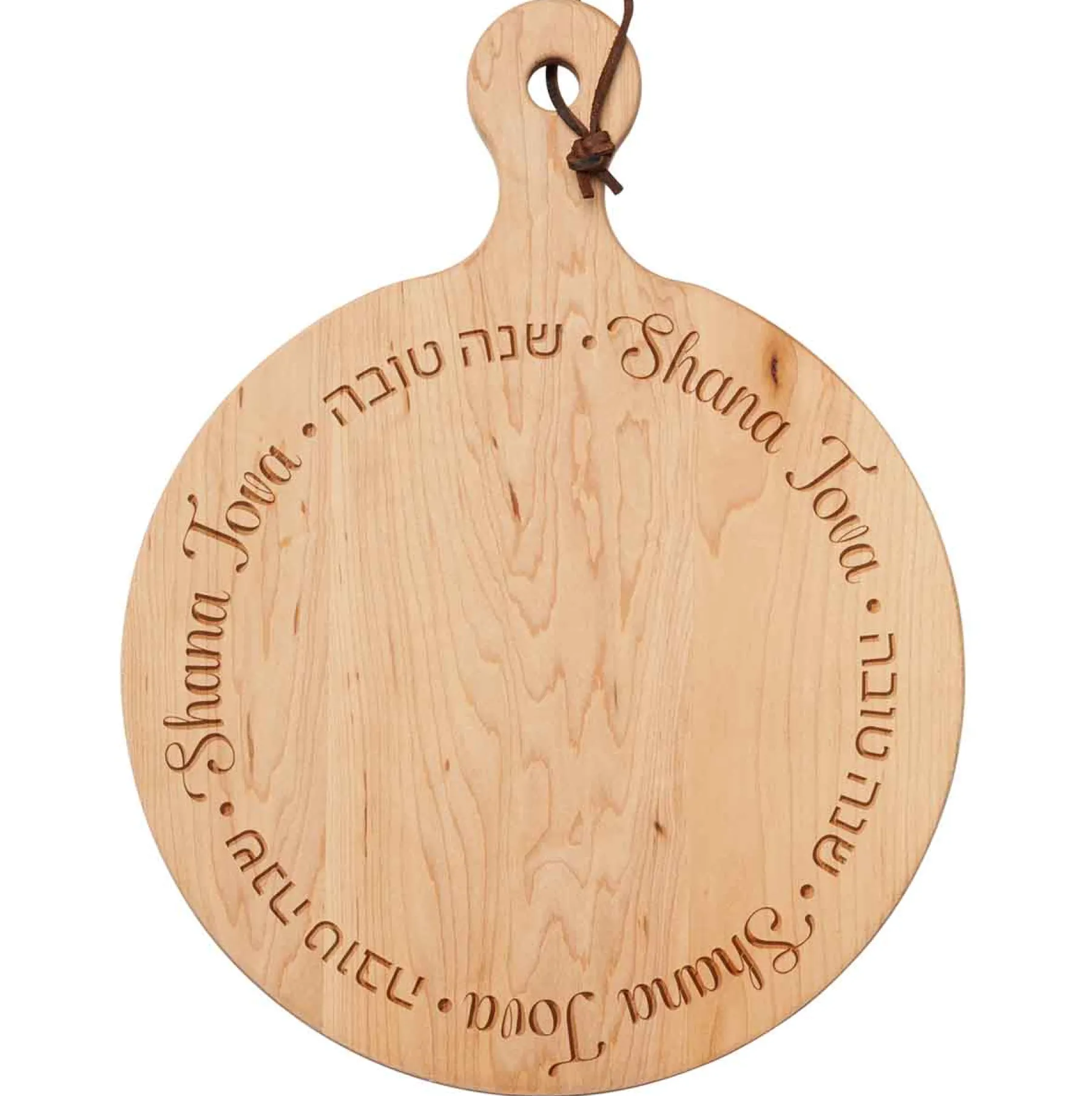 Celebrate Rosh Hashanah with sophistication using Sophistiplate’s 16×12″ Maple Round Board, elegantly adorned with Shana Tova on the border.