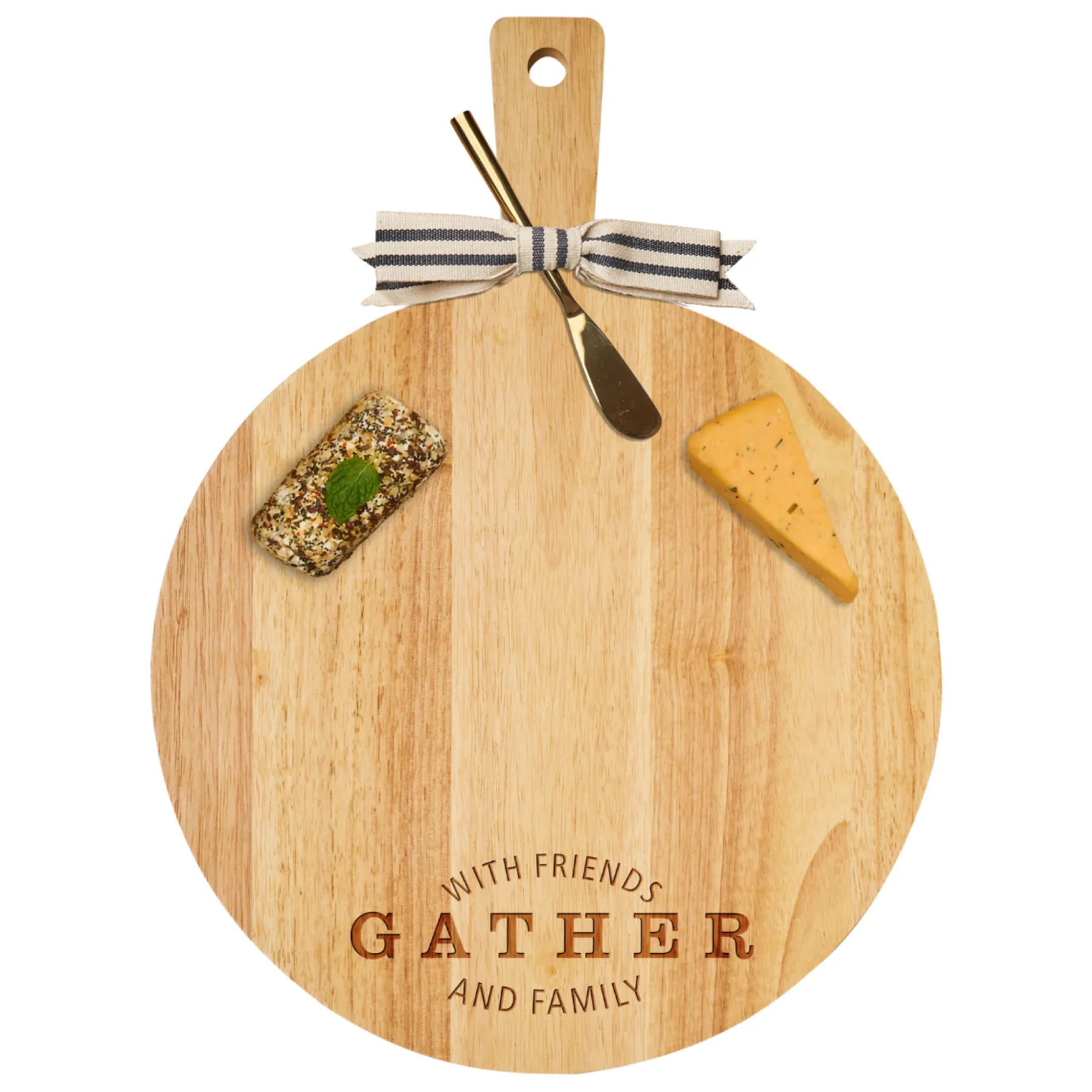 Be the first to review “19" x 14" Rubber Wood Thick Handle Round Cutting Board with Gold Spreader and Ribbon | Gather with Friends and Family-Maple Best” Cancel reply