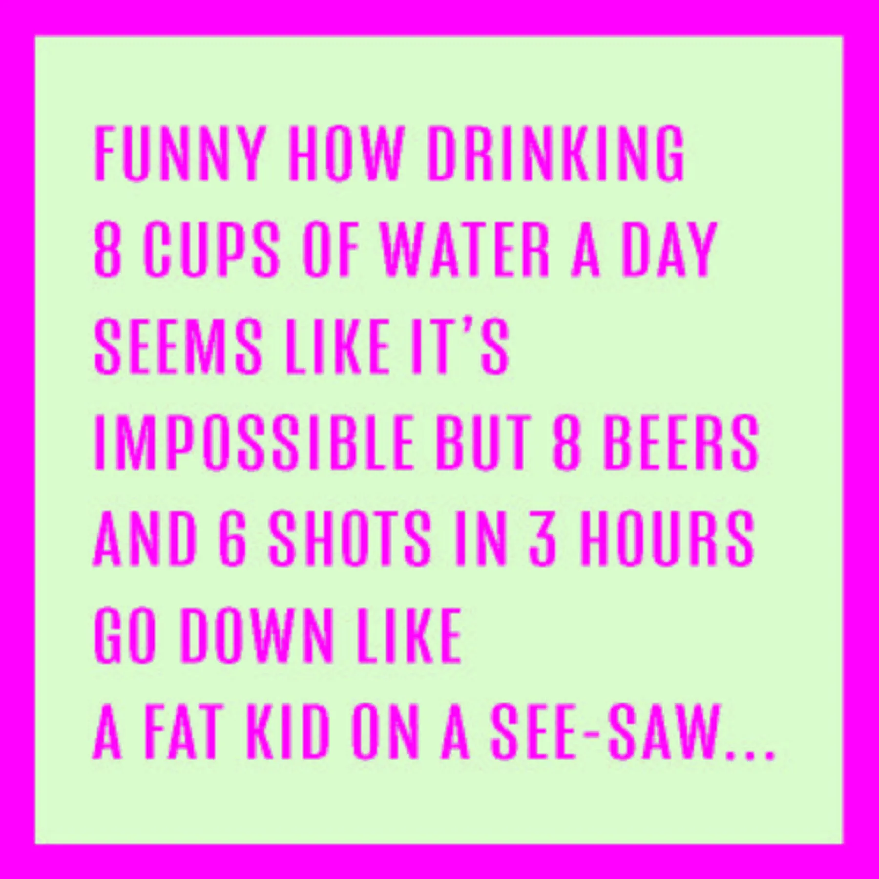 “Funny how drinking 8 cups of water a day seems like it’s impossible but 8 beers and 6 shots in 3 hours go down like a fat kid on a see-saw‚Ķ”