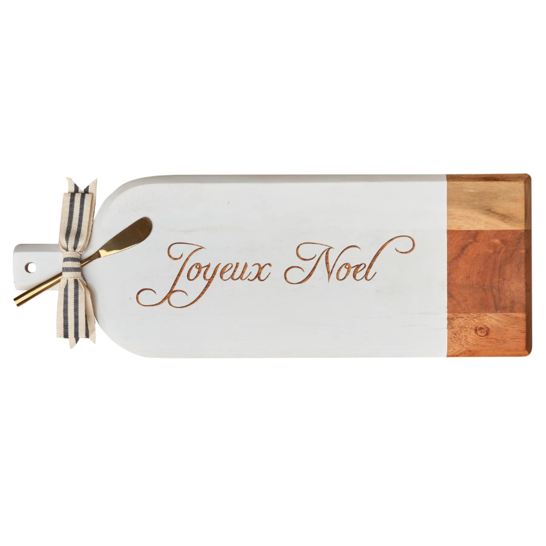 Dimensions: 20\” X 7\” X .6\””}’>Crafted from premium acacia wood in a sophisticated white color, this gorgeous charcuterie/cheese board features a beveled edge and handle that can be used as an impressive serving board.
