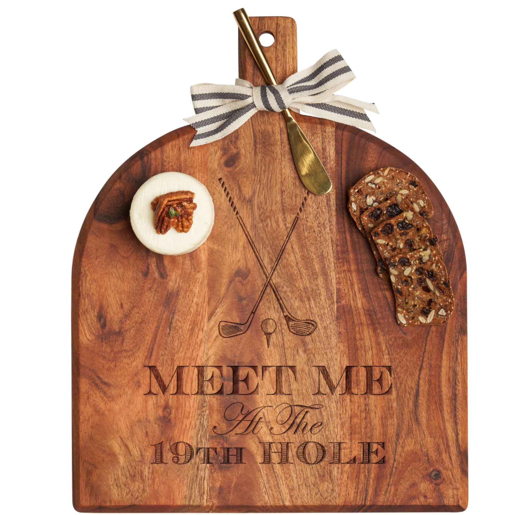 Acacia Bevel Board w/ Ribbon & Gold Spreader Knife | Meet Me at the 19th Hole | 15 x 12"-Maple Online