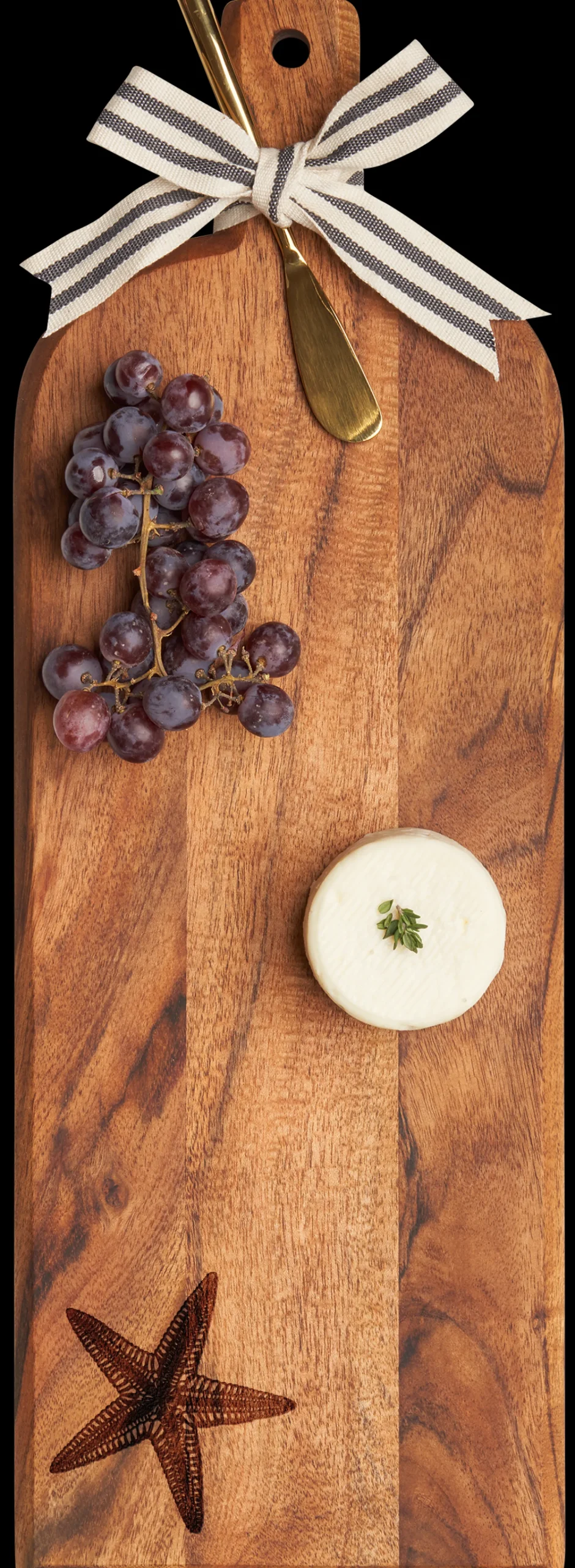 Acacia Bevel Board w/ Ribbon & Gold Spreader Knife | Starfish | 20 x 7"-Maple Best