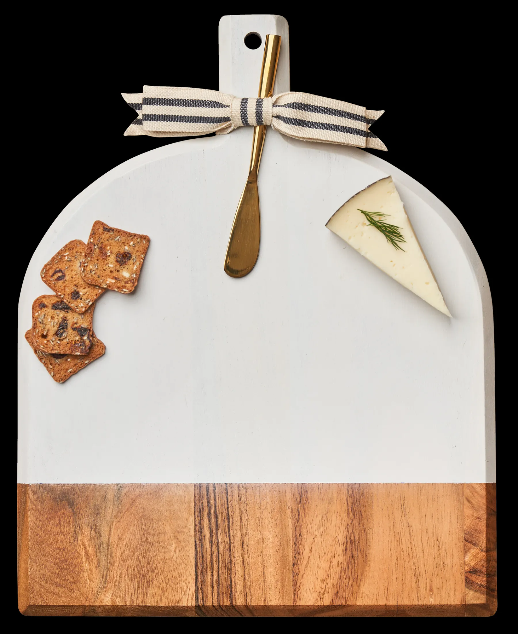 Acacia Bevel Board White w/ Ribbon & Gold Spreader Knife | 15" X 12" X .6"-Maple Outlet