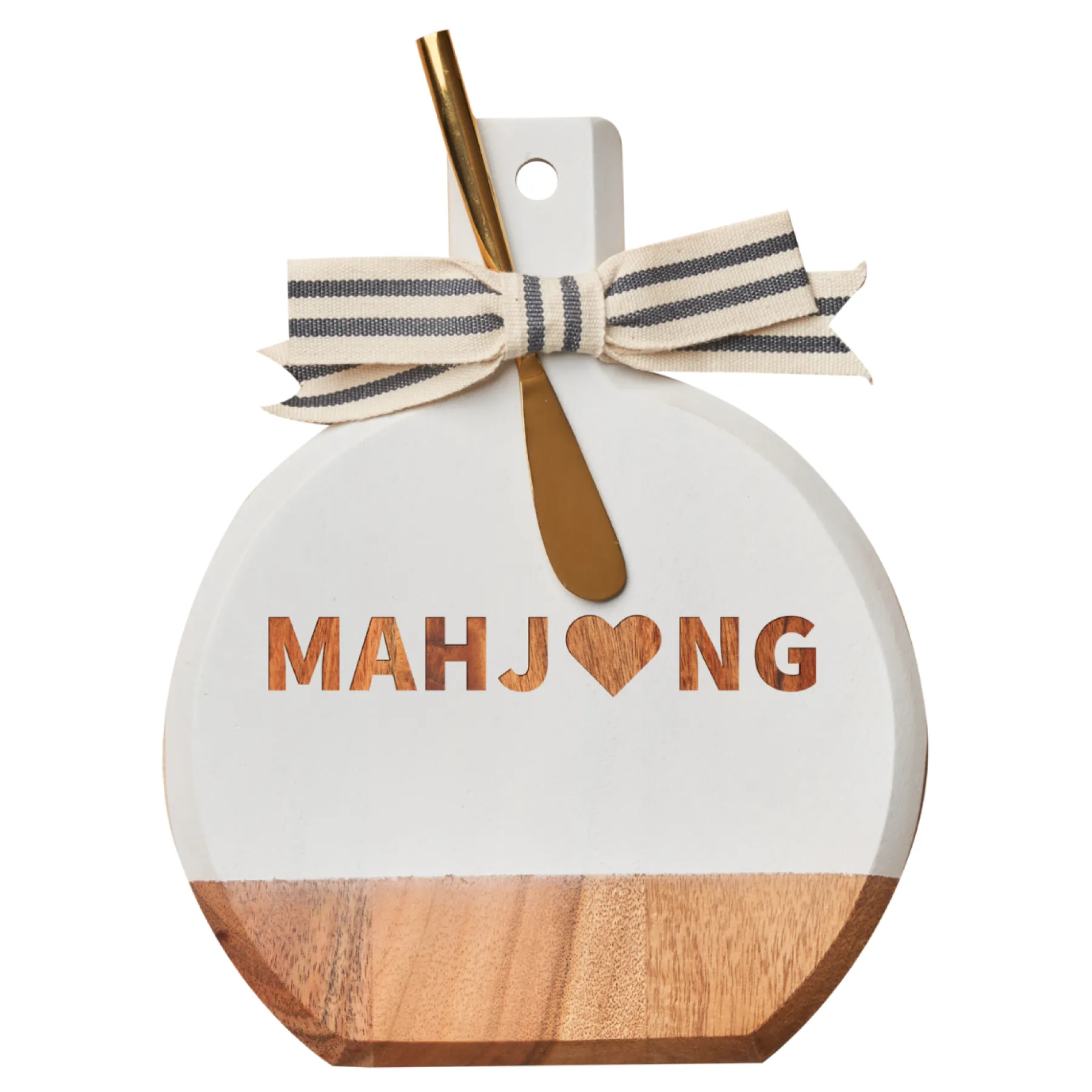 Acacia Bevel Board White w/ Ribbon & Gold Spreader Knife | Mahjong | 9.75 x 8"-Maple Fashion