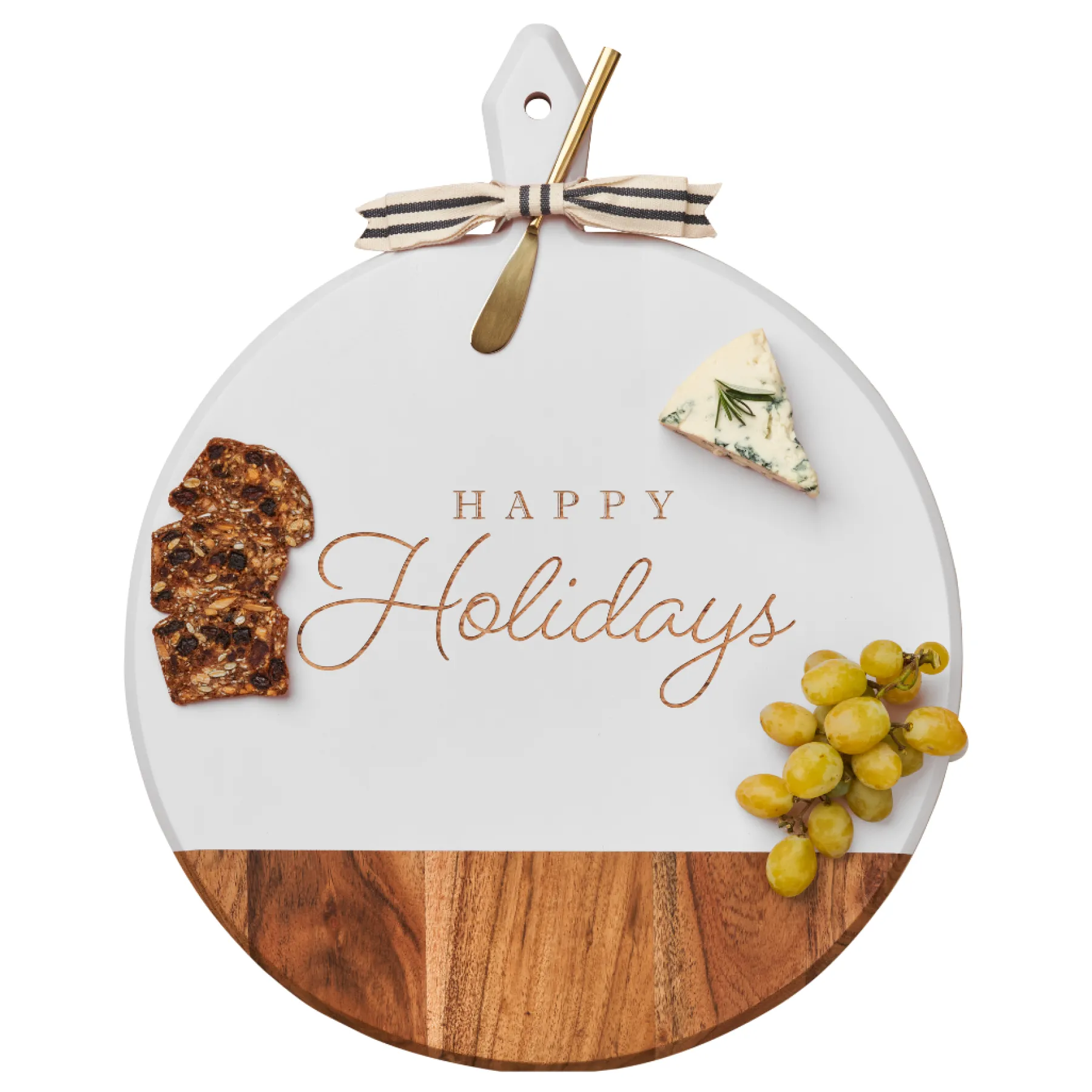 This premium acacia heirloom wood board is beautifully shaped with a food-safe colored finish on top.
