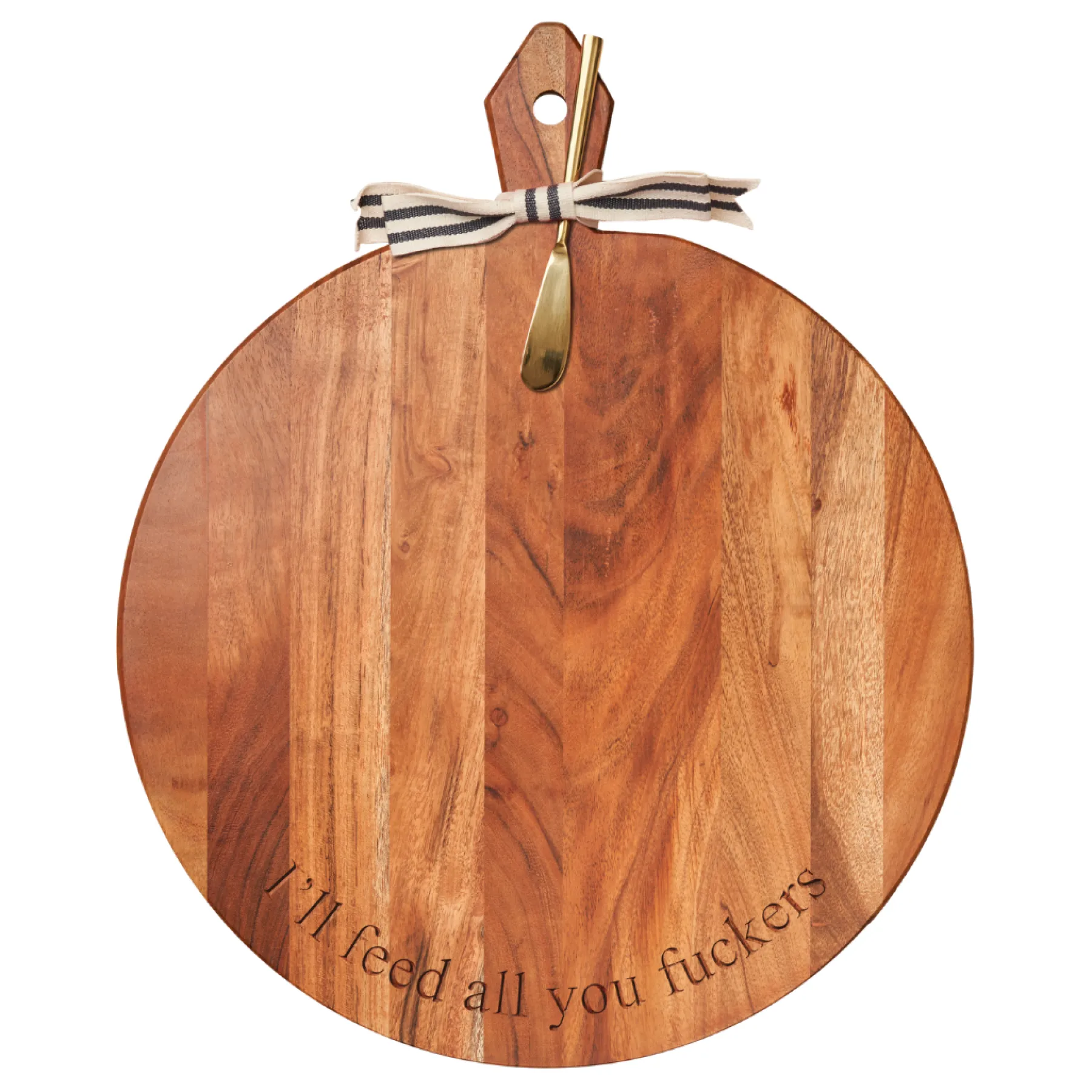This premium acacia heirloom wood board is beautifully shaped with natural wood finish.