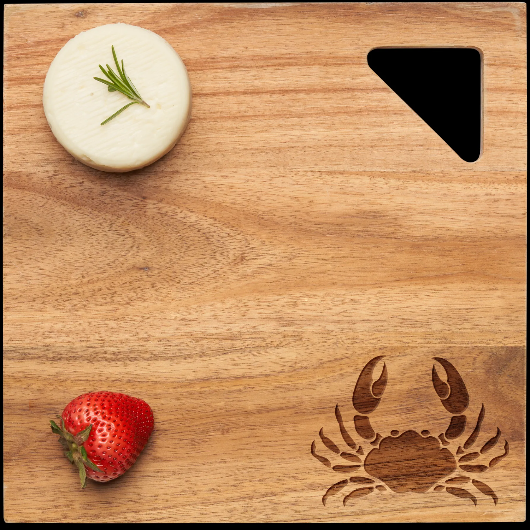 Premium acacia wood board in a sleek square shape with a perfect handle cut out. Perfect for serving, charcuterie, and more.