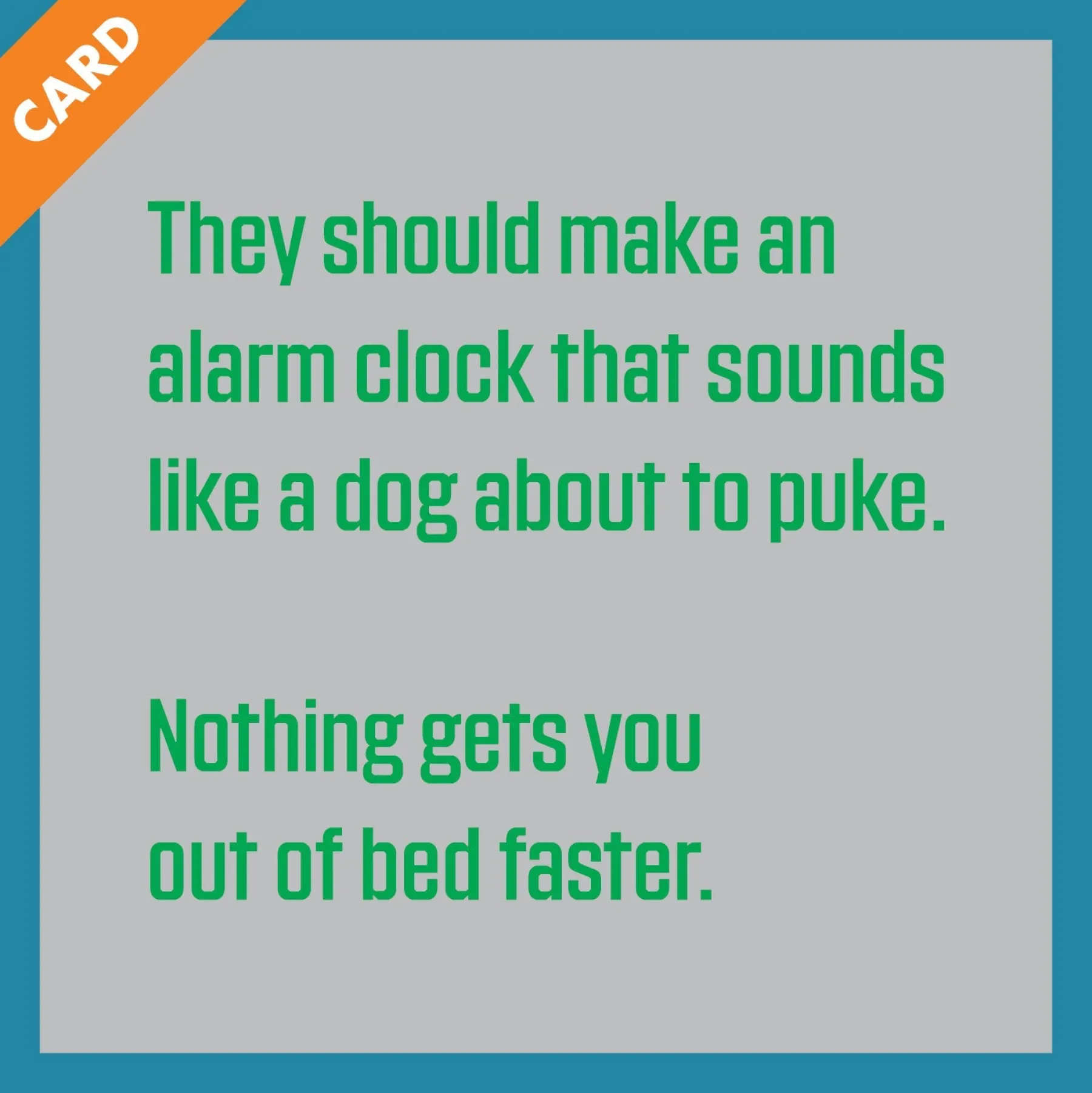 “They should make an alarm clock that sounds like a dog about to puke. Nothing gets you out of bed faster.