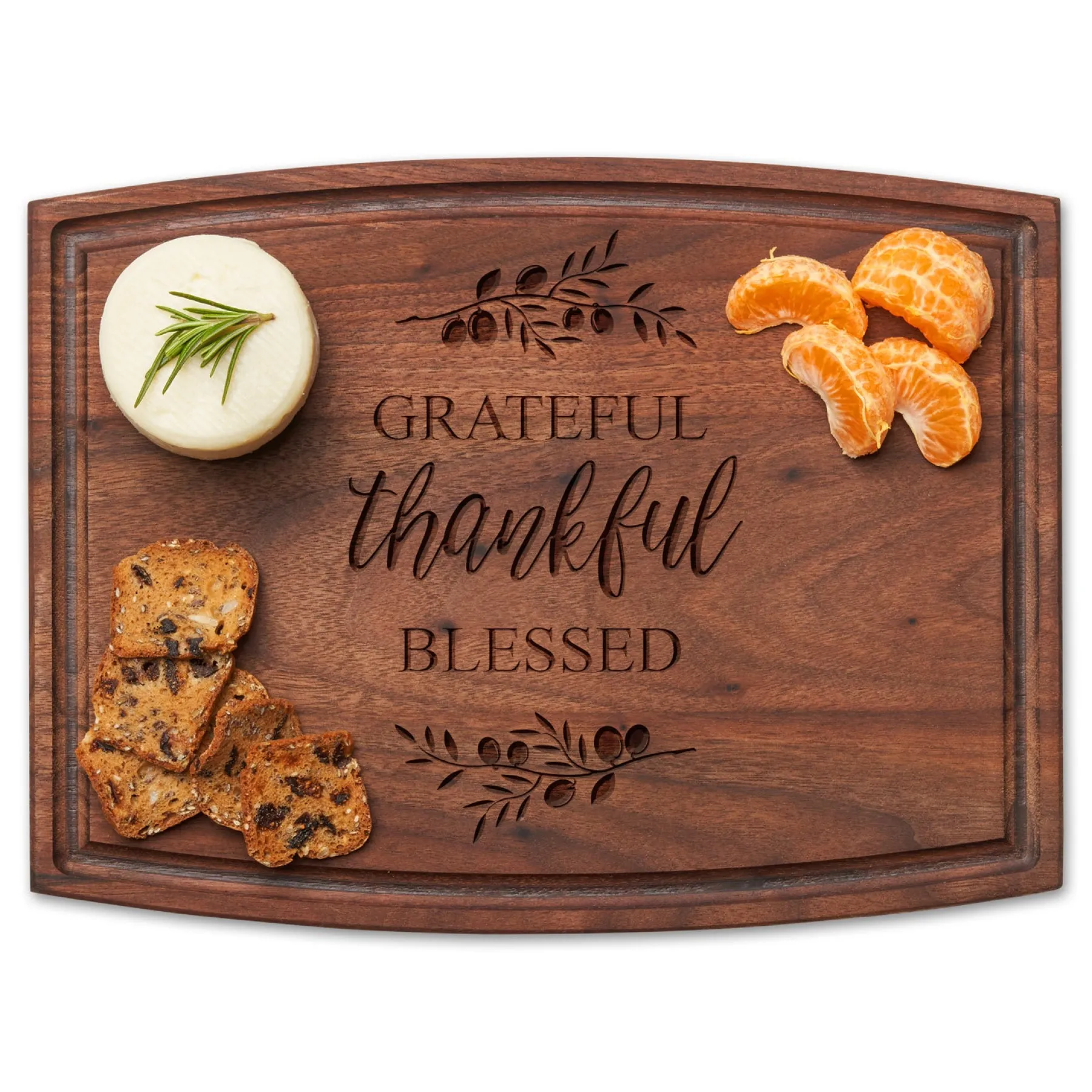 Crafted of premium Black Walnut wood, this gorgeous cutting + charcuterie/cheese board with juice groves is a workhorse that can be used for preparing food or as an impressive serving board or tray for cheese & charcuterie. This naturally self-healing and mark-resistant board are hand-finished with durable cutting board mineral oil to both protect the wood and bring out its natural grain. It will last a lifetime. Some variation in color & wood grain is part of the natural beauty of our spectacular boards.