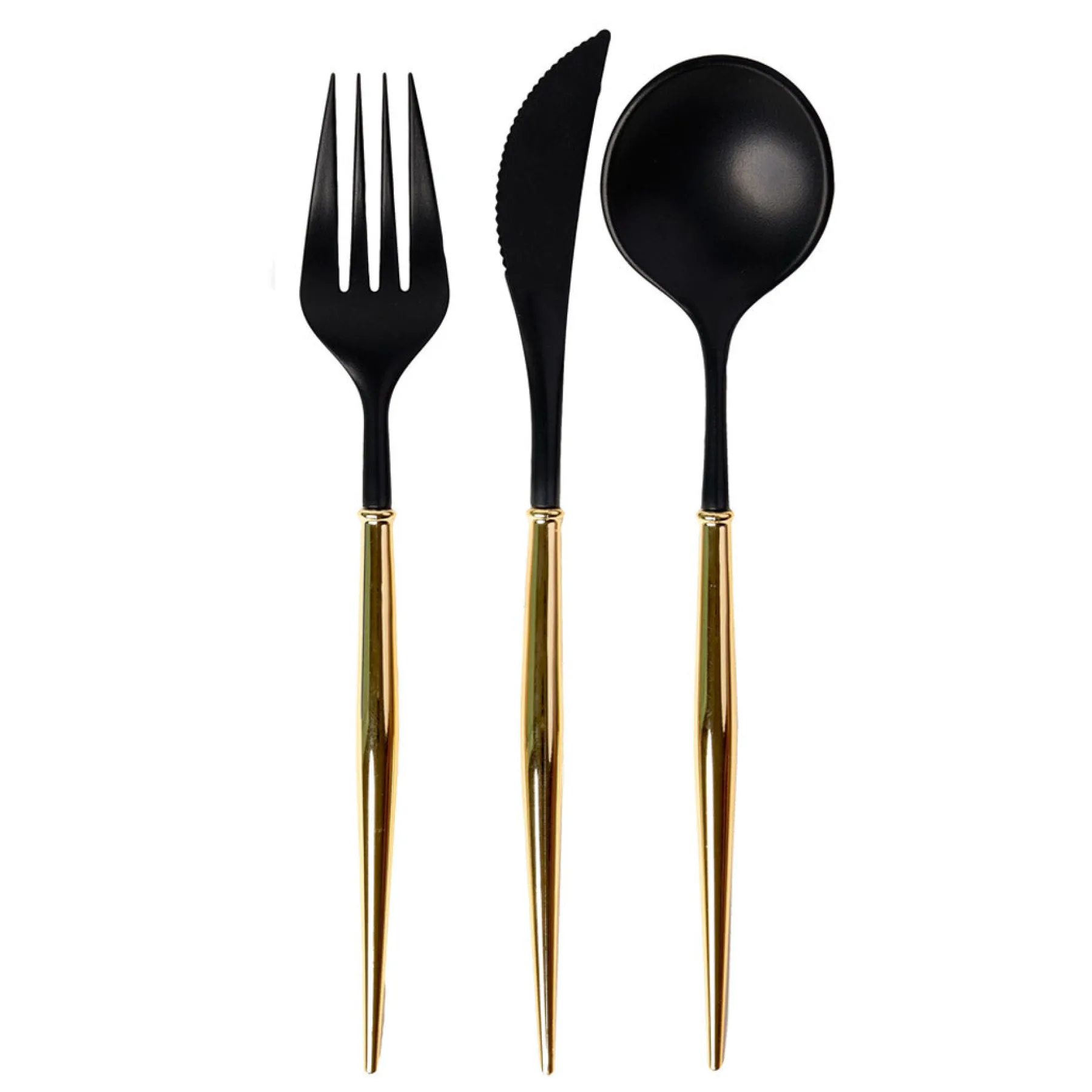 The Bella line of disposable plastic cutlery by Sophistiplate is a gorgeous and sleek modern design that elevates any table, place setting, or event. Perfect for Birthday Parties, Date Night, Family Gatherings, Holidays, Parties, BBQ’s, Outdoor Entertaining, Kids Parties, and more.