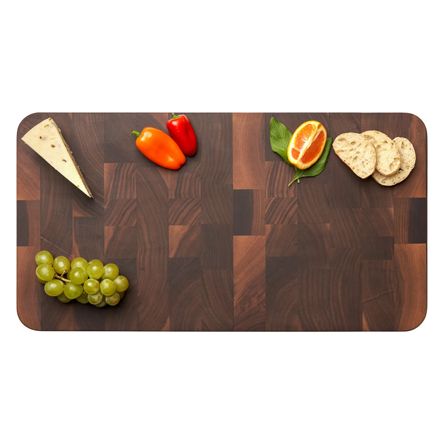 Crafted of premium black walnut wood, this gorgeous 2-inch-thick cutting board is a workhorse that can be used for preparing food or as an impressive serving board or tray for cheese & charcuterie. This naturally self-healing and mark-resistant board is hand finished with durable cutting board mineral oil to both protect the wood and bring out its natural grain. Will last a lifetime