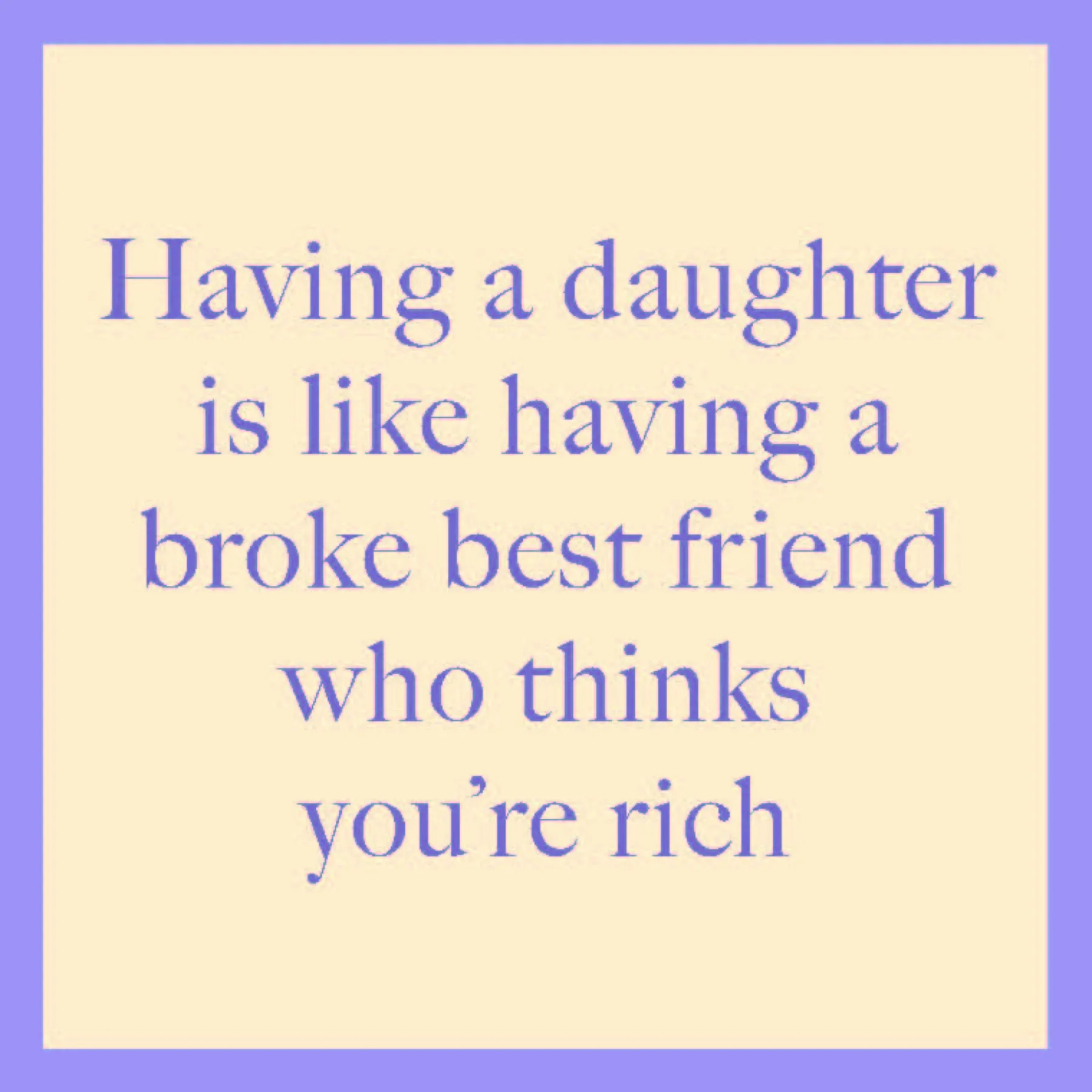 “Having a daughter is like having a broke best friend who thinks you’re rich.”