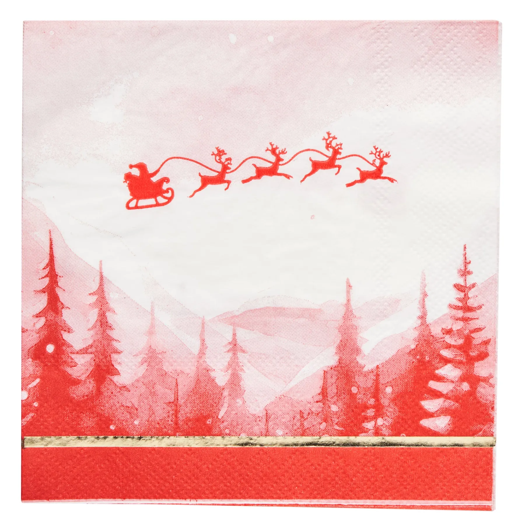 Add a touch of festive elegance to your table this holiday season with our new Christmas Village Table Setting. Featuring Santa and his flying reindeer, this cocktail napkin seamlessly blends modern style with timeless elegance, perfect for the Christmas season. The festive red and white hues coupled with our signature gold foil will turn any table setting into a sophisticated and Instagrammable Christmas tablescape.
