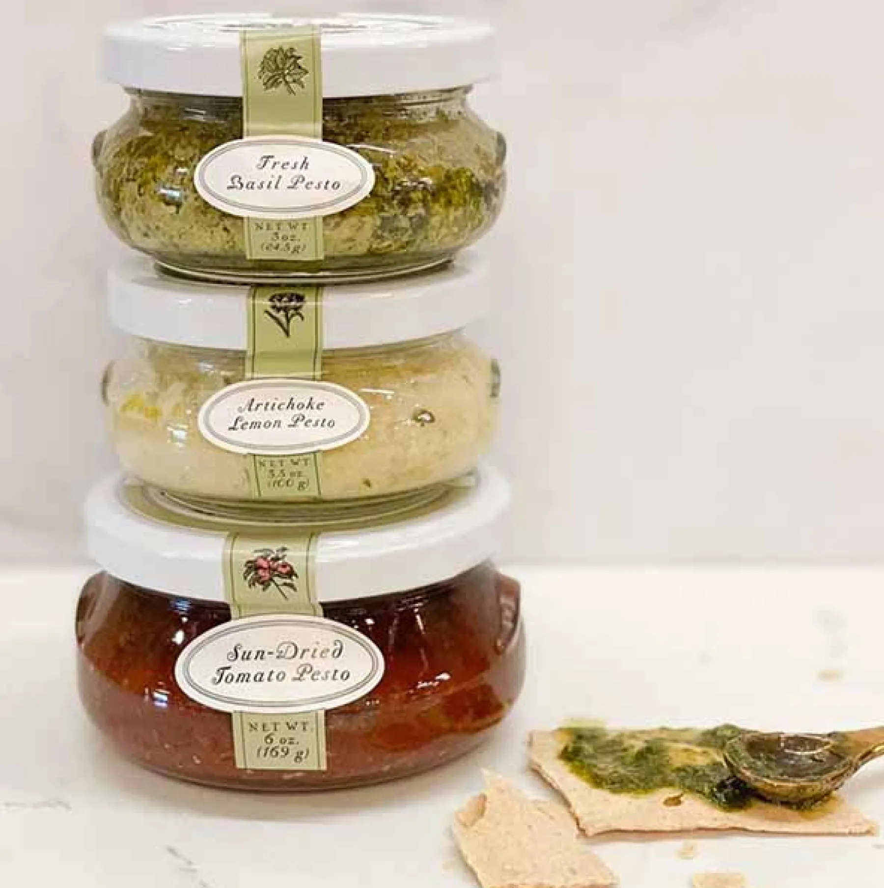 Together, these three pestos offer a diverse range of flavors that will enhance your charcuterie board, providing an array of taste sensations that are sure to impress.