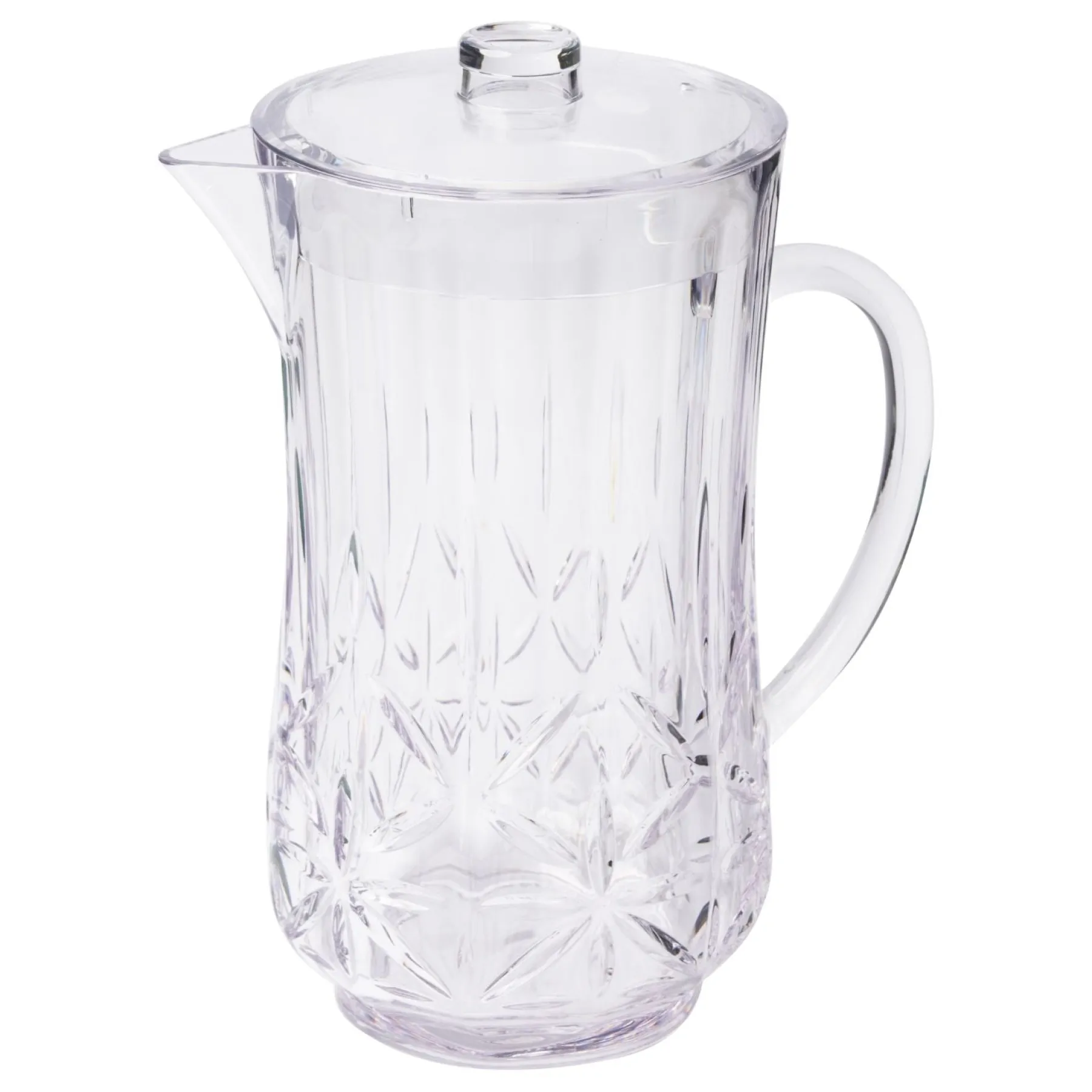 Why is this pitcher better than glass? It doesn’t sweat, so you won’t have to deal with drips on your table or a pool of water at the base. This sophisticated, crystal-like pitcher will enhance any setting, adding a touch of elegance and practicality to your gatherings. Enjoy the beauty of fine glassware with the durability and convenience of high-quality plastic!