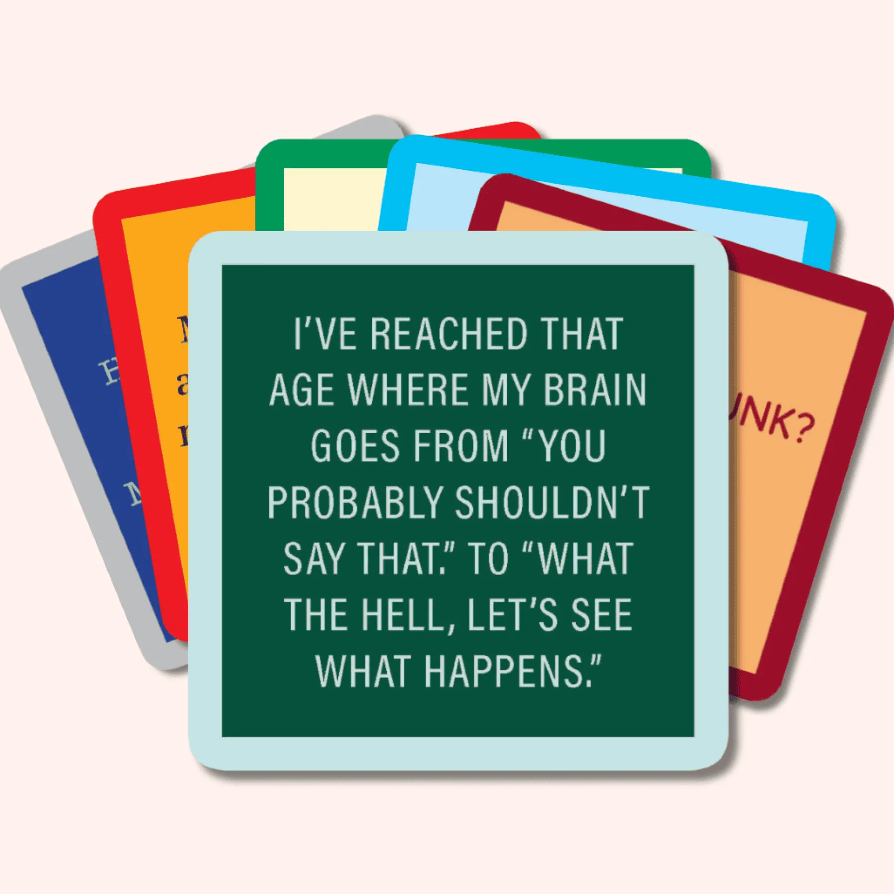 Get the party started (and the laughs rolling) with our Best-Selling Coaster Bundle. From laugh-out-loud one-liners to perfectly inappropriate punchlines, our coasters elevate everyday drinks into memorable moments. Printed in the USA on lightweight, ultra-durable resin, these coasters can handle even your most unfiltered friends. Whether you’re hosting girls’ night or just sipping solo with your dog—these coasters will make you literally LOL.
