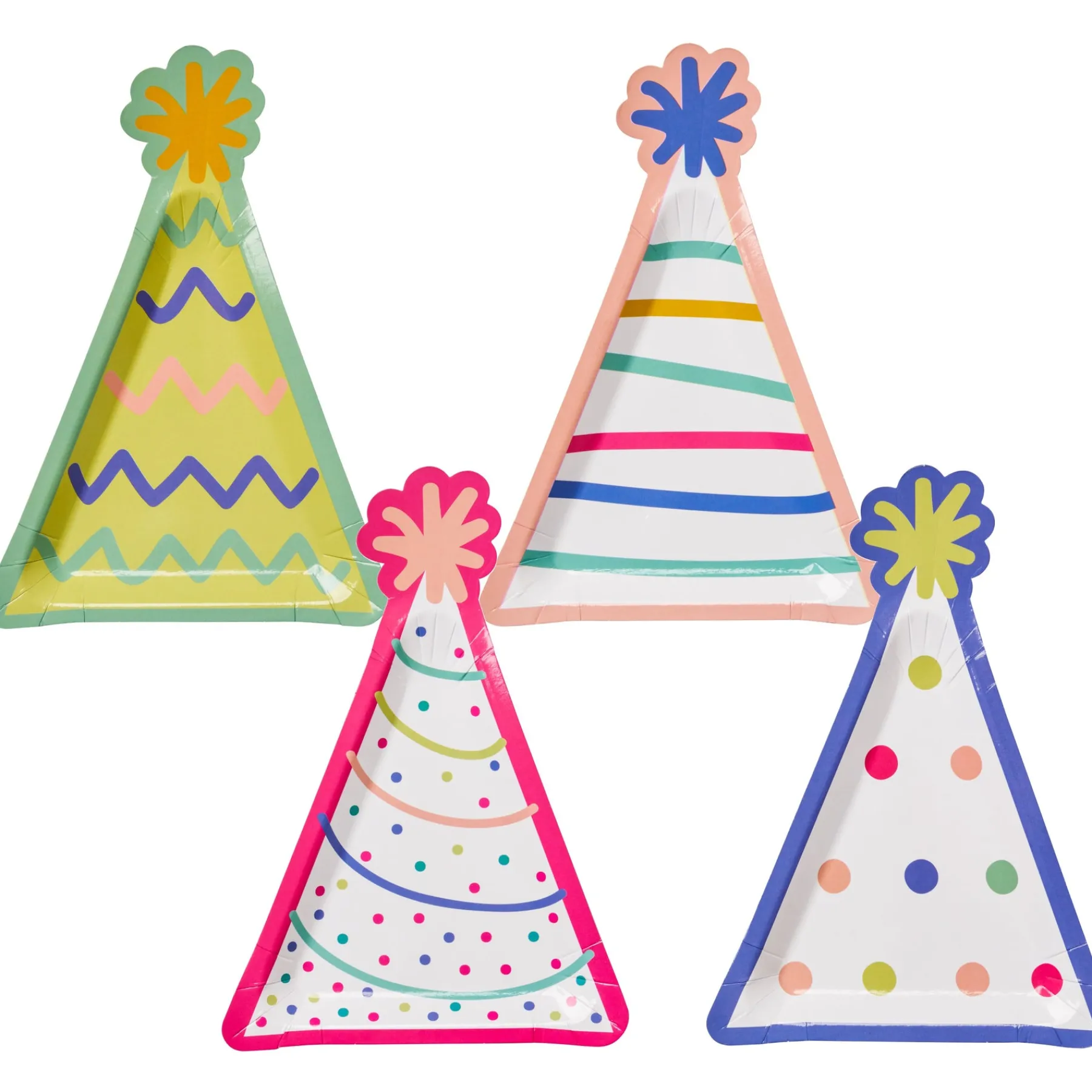 These stunning paper plates will make you want to host a party at the first chance you get! These fun die-cut plates feature a birthday party hat design in festive patterns! Add a touch of elegance to your holiday gatherings! Impress your guests with these perfect pieces. Your guests will not believe that these are paper plates! Pairs beautifully with our Villa plastic cutlery, matching napkins, paper baking cups, and party picks!