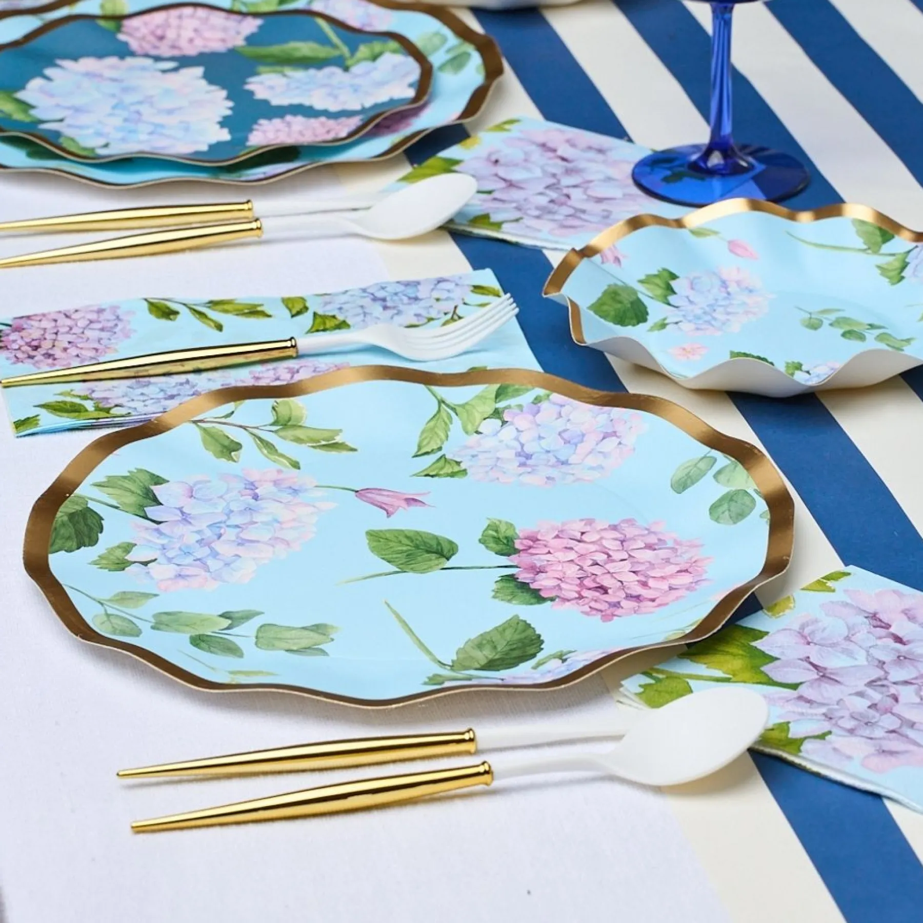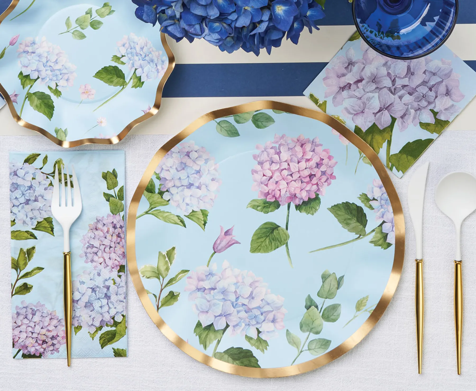 These ruffled foil edge plates feature images of beautiful hydrangea flowers on a serene blue background! Add a touch of elegance to your holiday gatherings! Impress your guests with these perfect pieces. Your guests will not believe that these are paper plates!