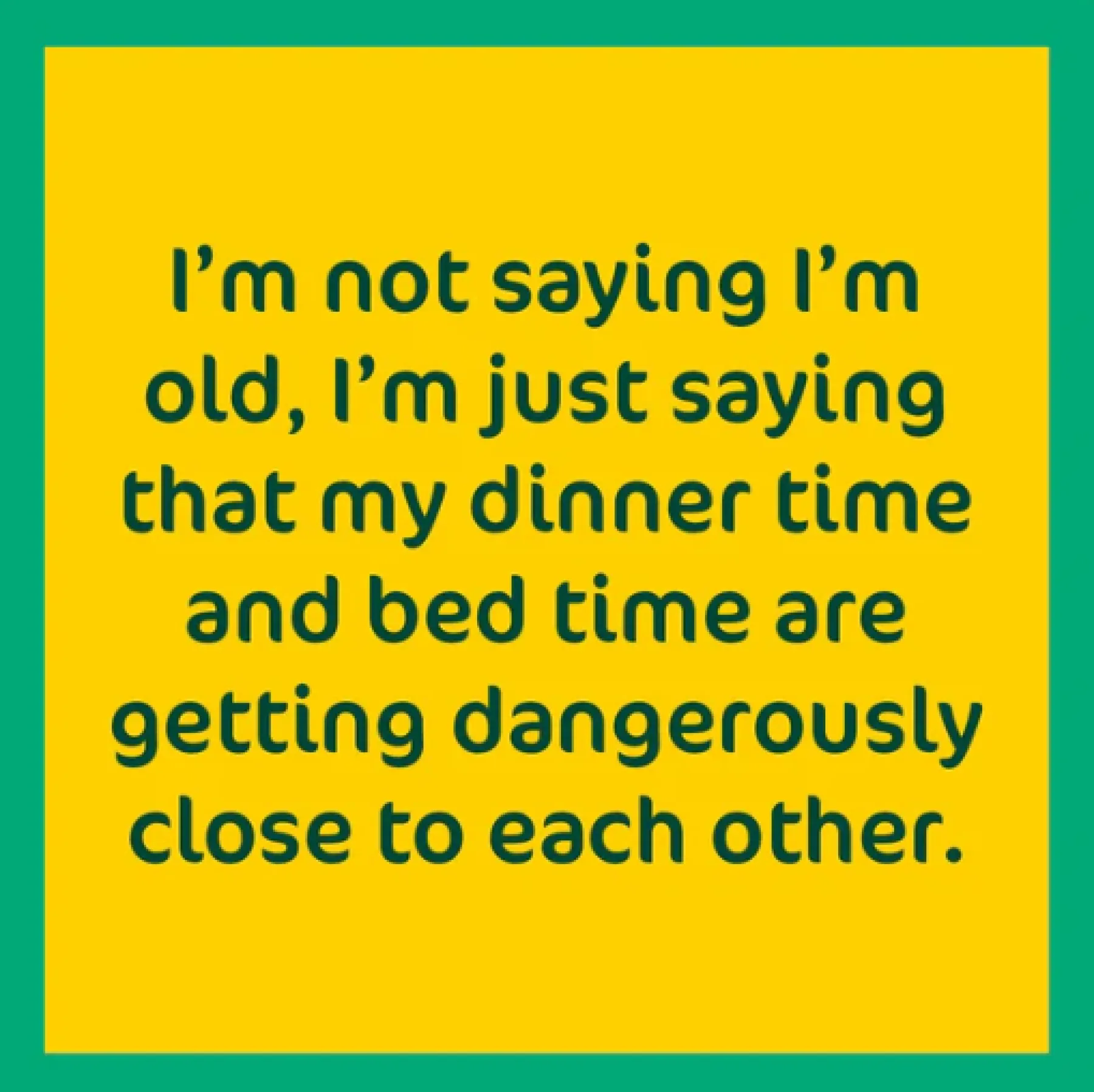 “I’m not saying I’m old, I’m just saying that my dinner time and bed time are getting dangerously close to each other.”