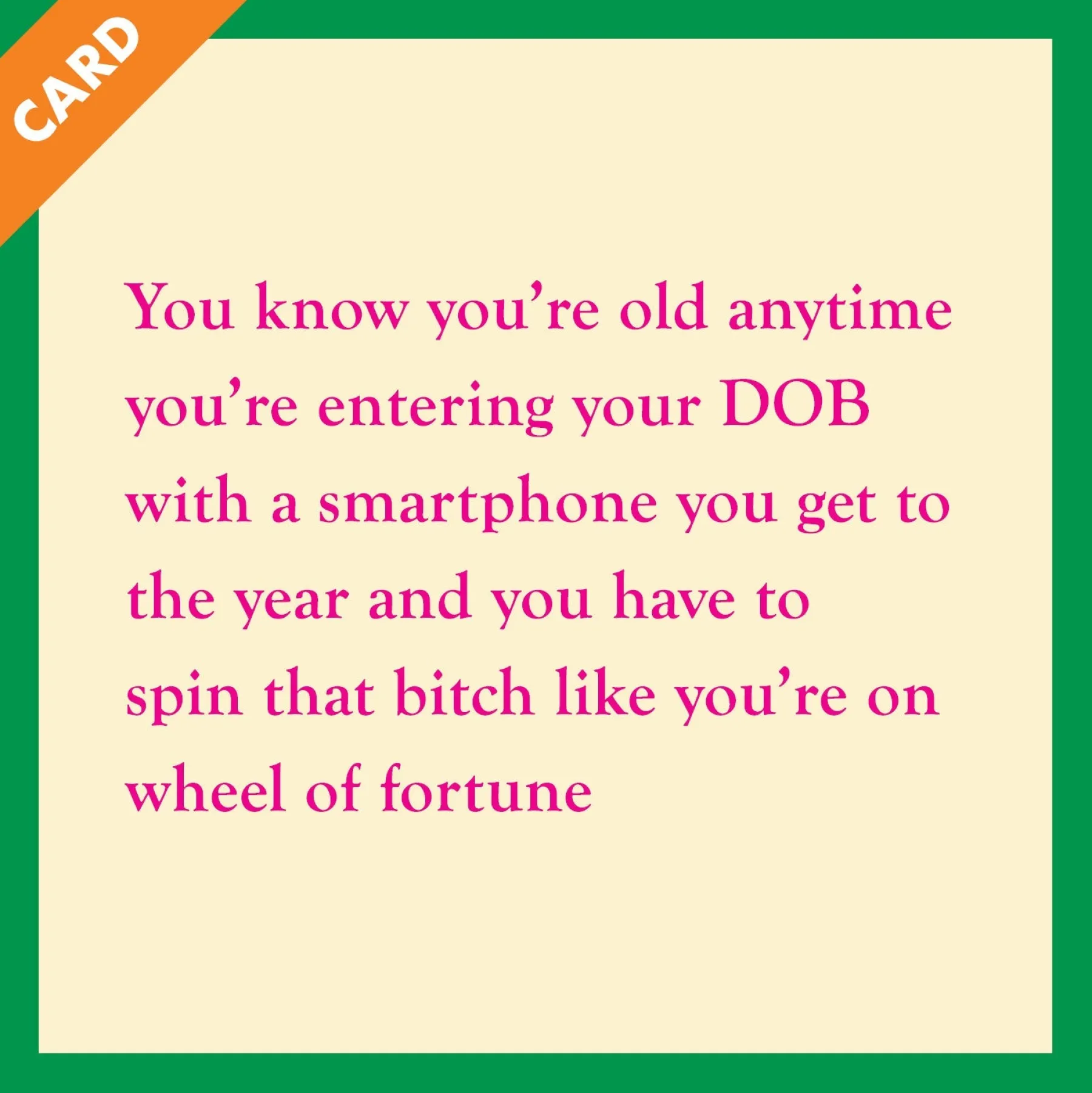 “You know you’re old anytime you’re entering your DOB with a smartphone you get to the year and you have to spin that bitch like you’re on wheel of fortune”