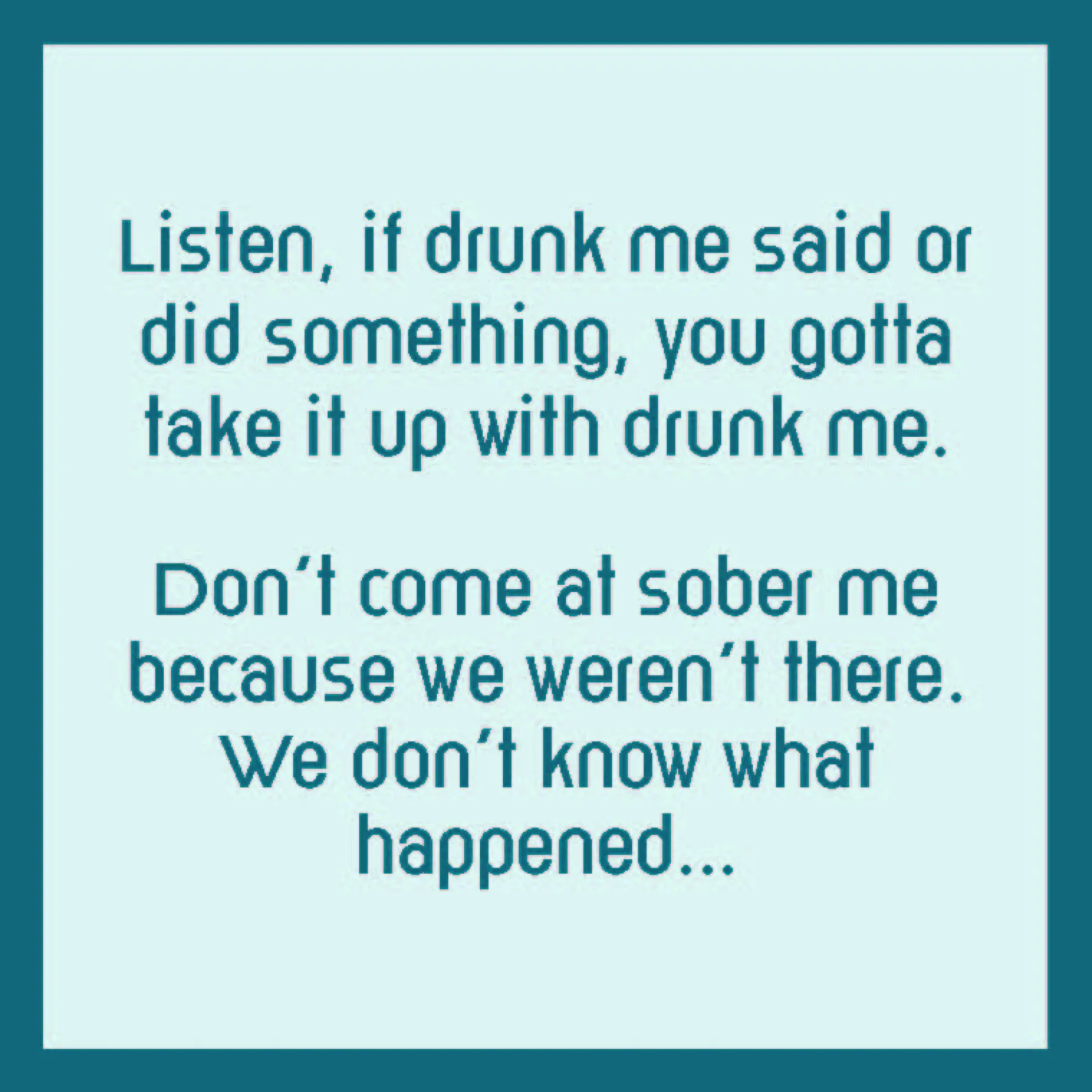 “Listen, if drunk me said or did something, you gotta take it up with drunk me. Don’t come at cover me because we weren’t there. We don’t know what happened‚Ķ”