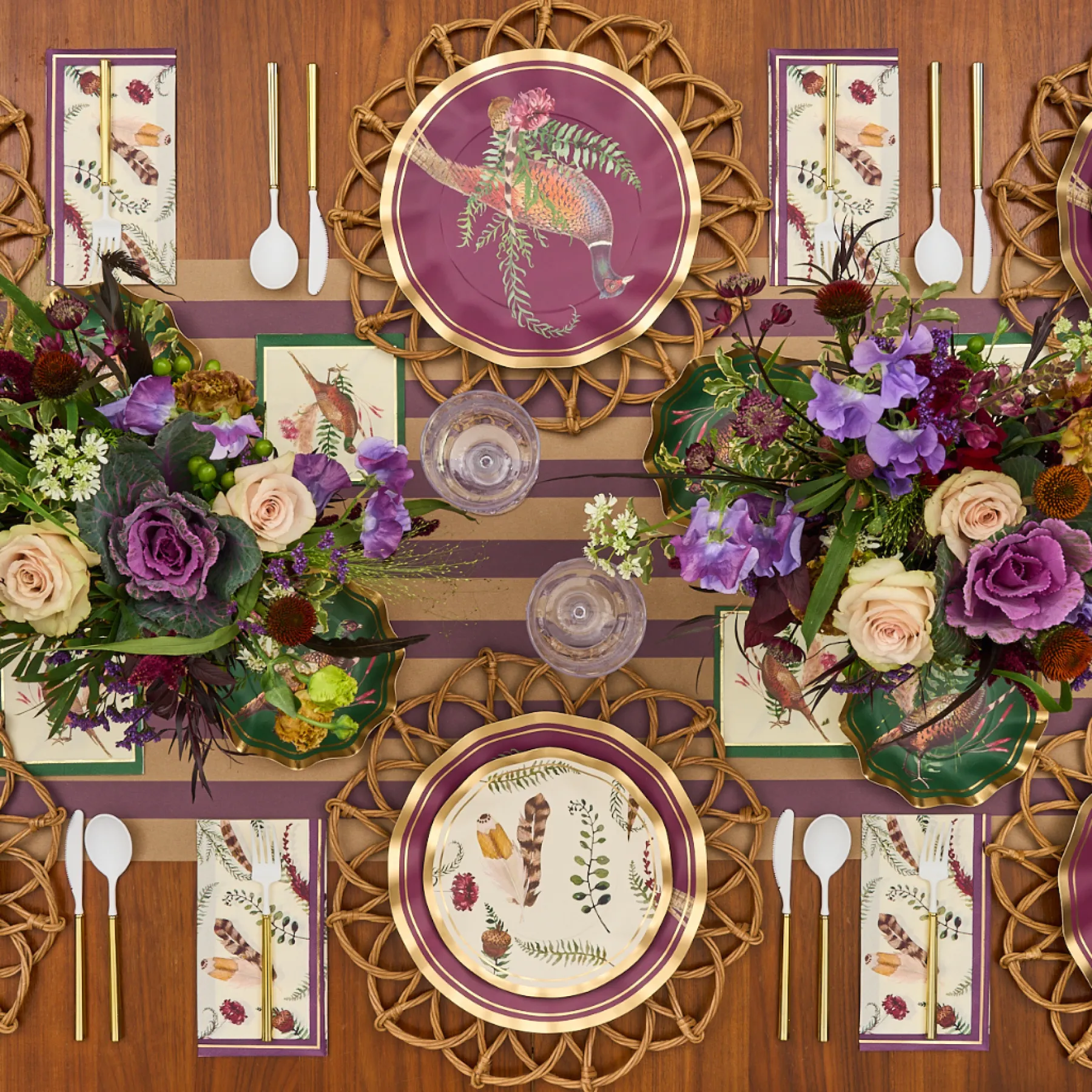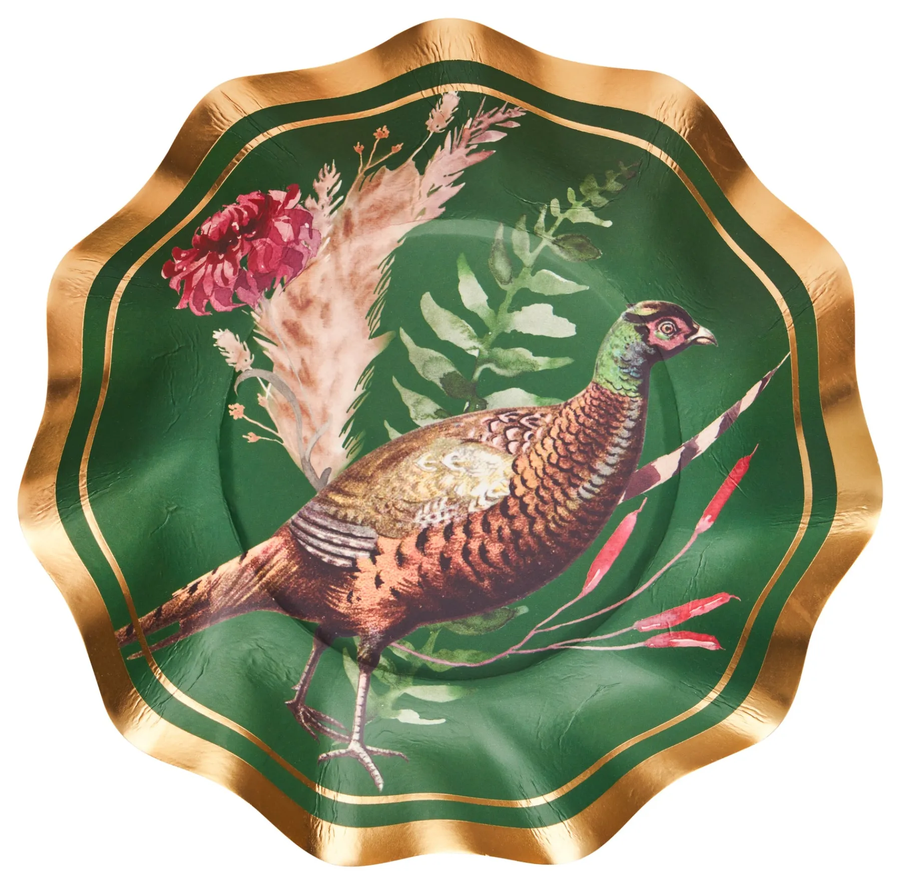 Celebrate autumn with our new Feather Grove Collection, featuring the rich colors of the fall season. These ruffled edged, fall foliage designed appetizer/dessert bowls are adorned with gold foil accents and will make you want to host a party at the first chance you get! Create an Instagram-worthy tablescape that your guests will “fall” for this season with these show-stopping bowls featuring the bird of the season!
