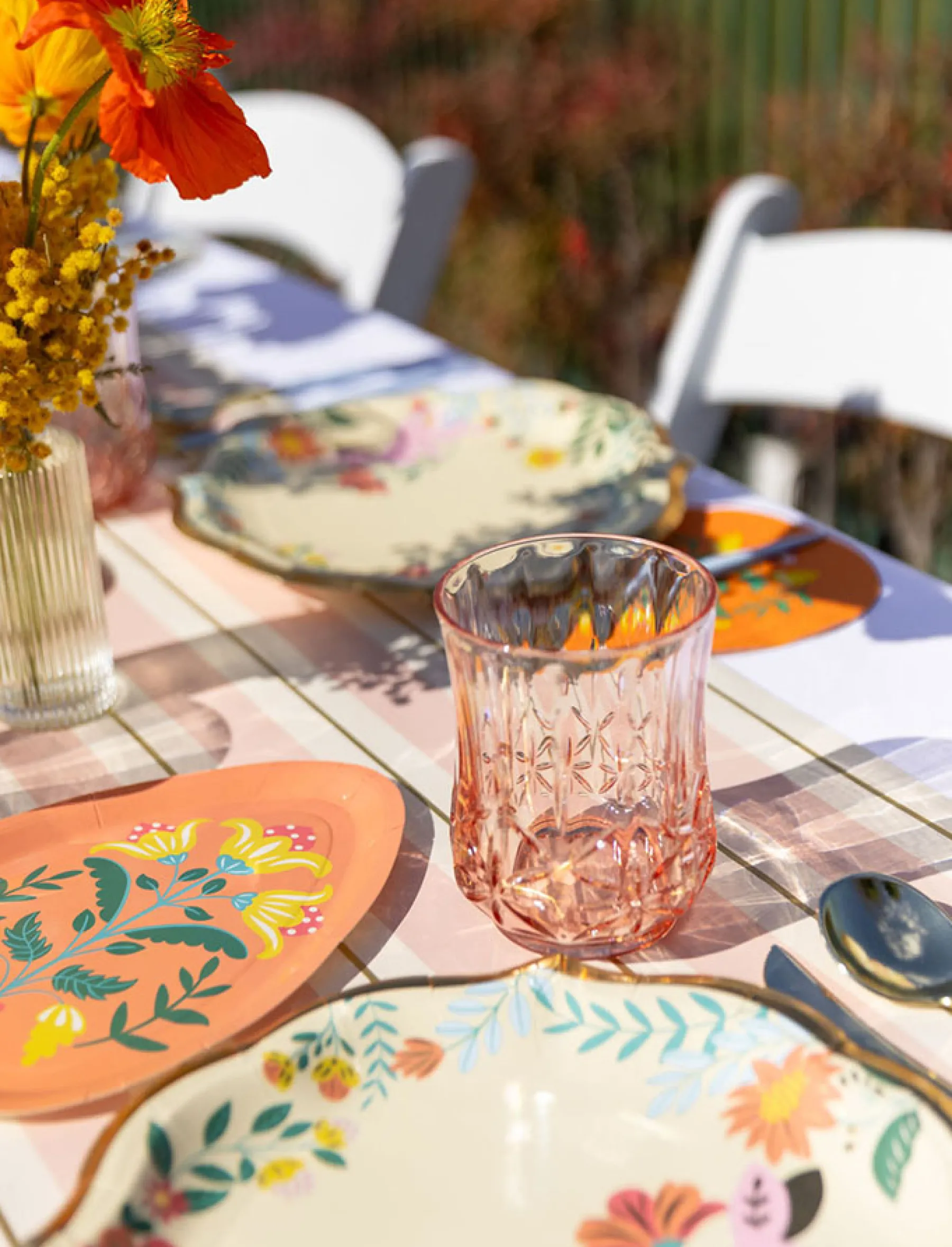 Set the scene for a festive meal with the Folklore Easter dinner plate. Decorated with soft pastel tones and detailed illustrations of Easter flowers and bunnies, these plates add a playful yet elegant charm to your Easter table. These plates are both durable and disposable, allowing you to skip the dirty dishes, without sacrificing quality and style. Your guests will never believe they’re disposable!