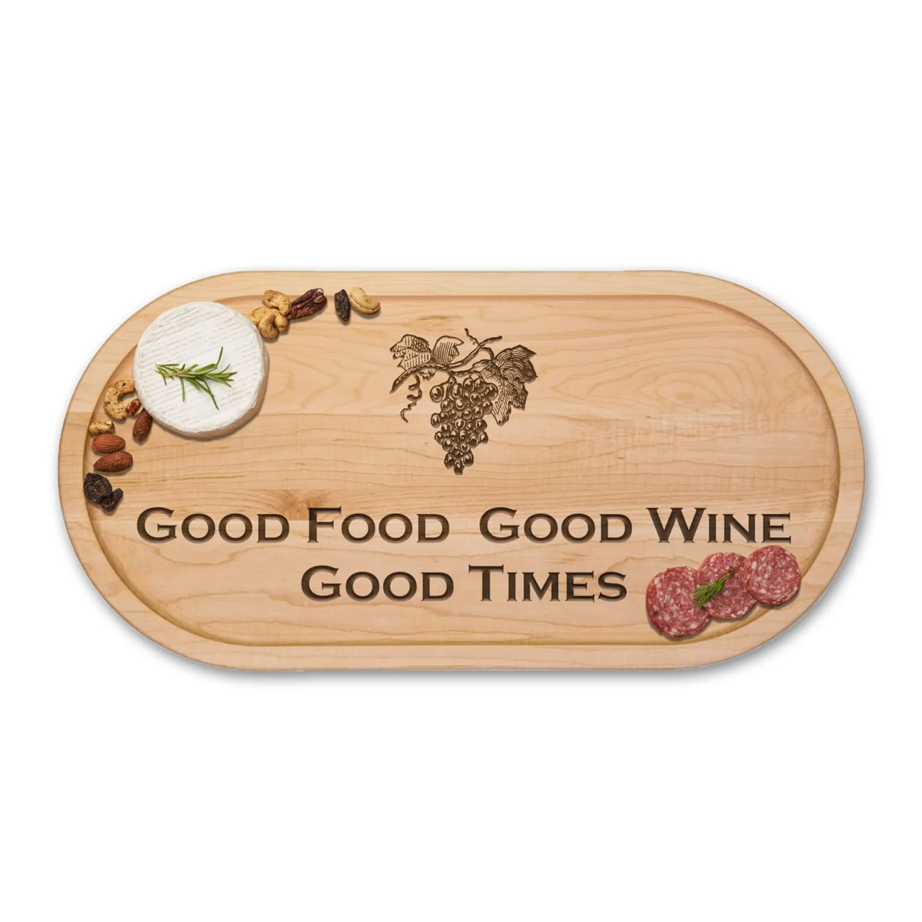 Crafted of premium hard rock Maple wood, this gorgeous cutting + charcuterie/cheese board is a workhorse that can be used for preparing food or as an impressive serving board or tray for cheese & charcuterie. This naturally self-healing and mark-resistant board is hand-finished with durable cutting board mineral oil to both protect the wood and bring out its natural grain. Will last a lifetime. Some variation in color & wood grain is part of the natural beauty of our spectacular boards.