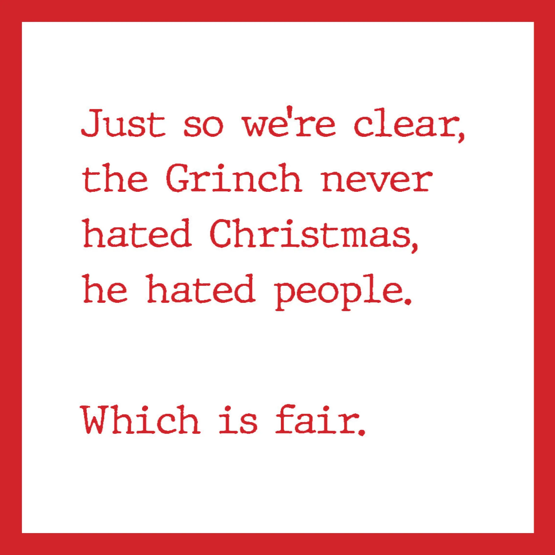 Just so we’re clear, the Grinch never hated Christmas, he hated people. Which is fair.