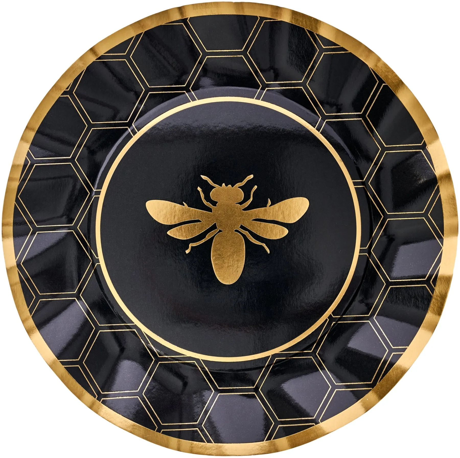 These ruffled edge black and white beauties with Honeybee design have a metallic gold rim and will make you want to host a party at the first chance you get, and add a touch of elegance to any event. Impress your guests for a beautiful brunch, boat party, Picnic, New Years, BBQ, Mothers & Fathers Day, garden party, birthday, and more! Your guests will not believe that these are paper plates!