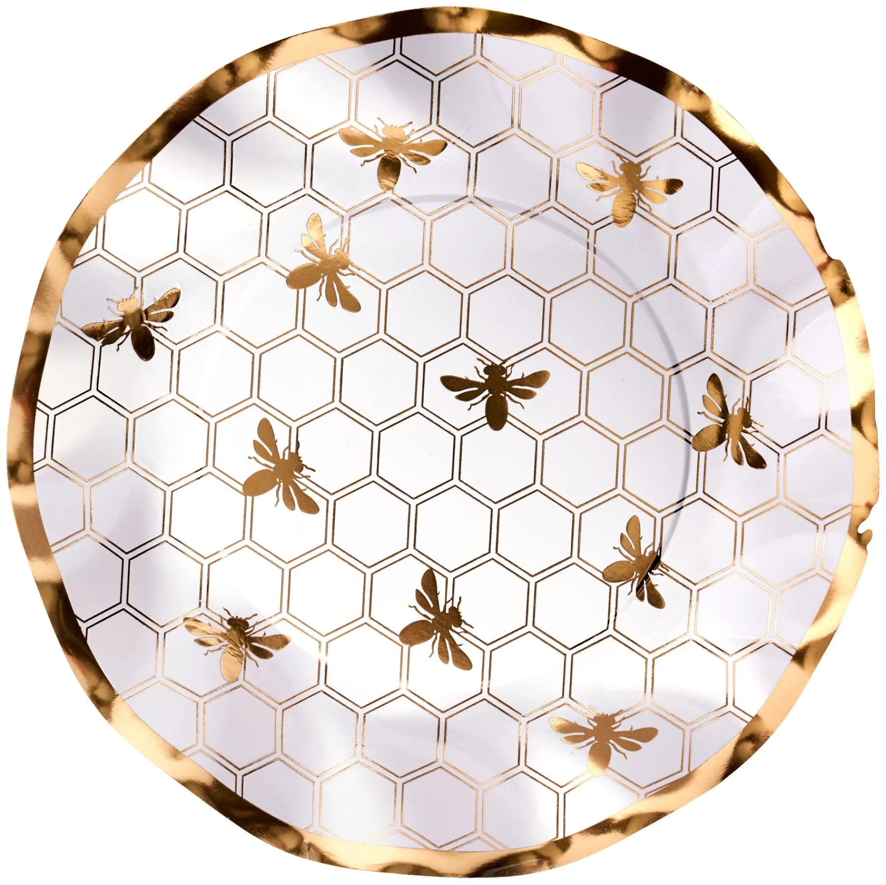 These ruffled edge black and white beauties with Honeybee design have a metallic gold rim and will make you want to host a party at the first chance you get, and add a touch of elegance to any event. Impress your guests for a beautiful brunch, boat party, Picnic, New Years, BBQ, Mothers & Fathers Day, garden party, birthday, and more! Your guests will not believe that these are paper plates!
