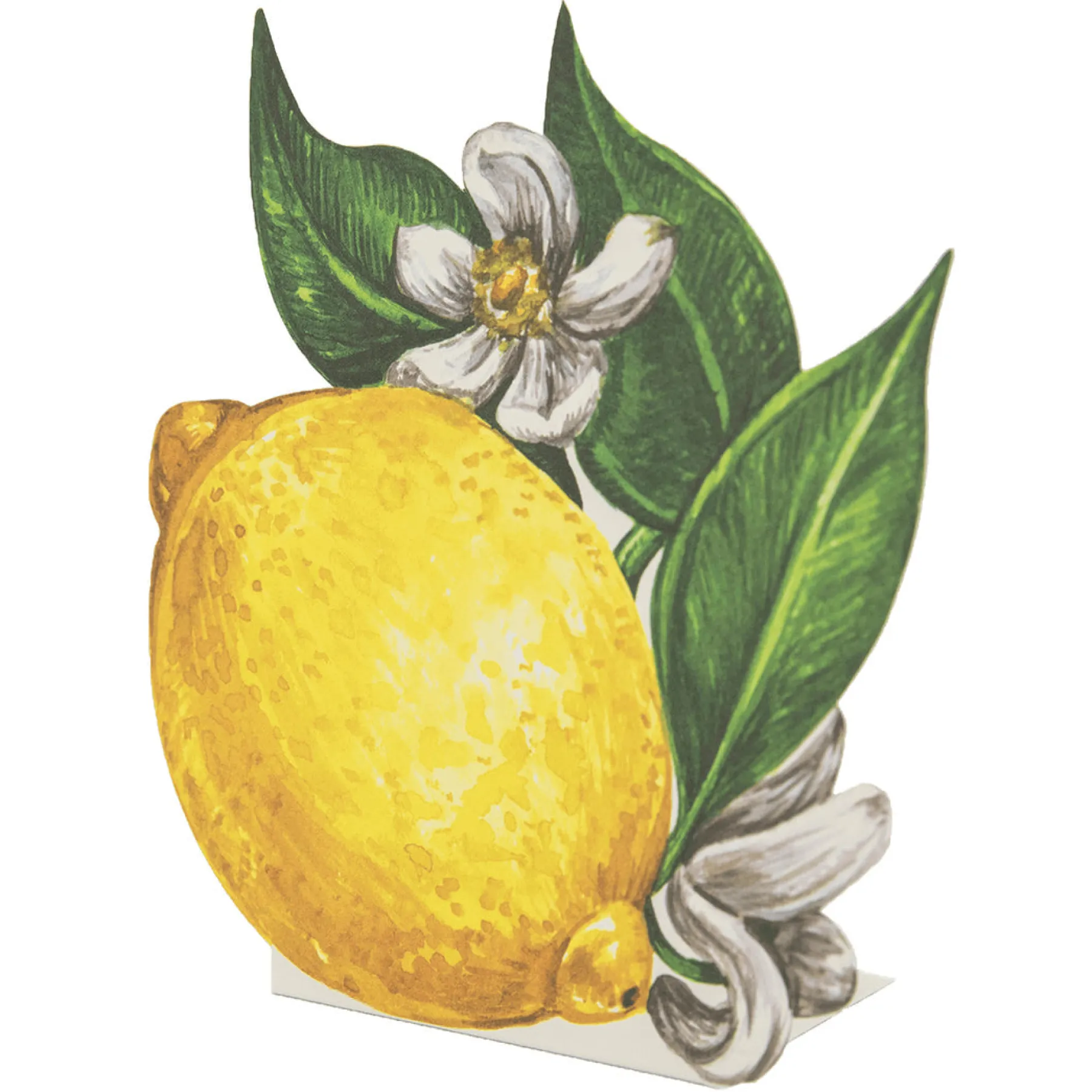 Our oversized Lemon Place Card is a cheerful addition to spring and summer tables, buffets, and more. With plenty of writing space, these can be used to mark seating, label dishes, or offer a welcoming message to guests.