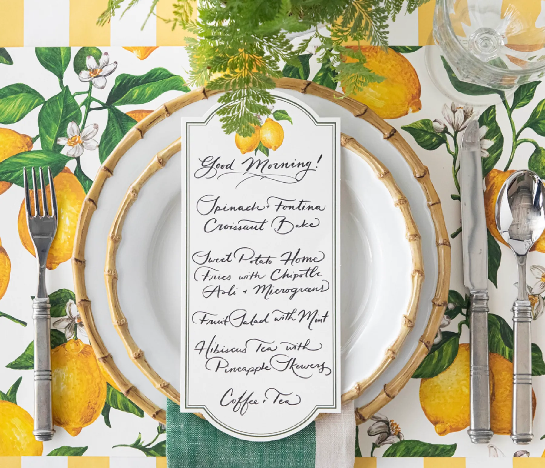 Elevate your table setting with a touch of elegance! These lemon table cards add a sophisticated accent to your dining experience. Perfect for menus, lists, itineraries, sweet sentiments, and more.