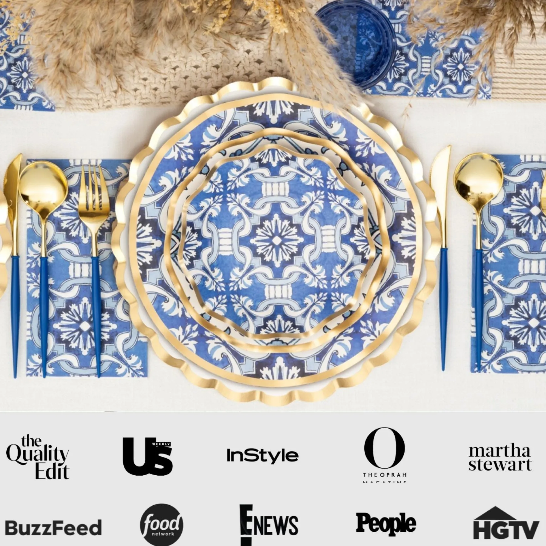 Hosting Made Easy:Take the guesswork out of decor with our tablescape-in-a- box! Our decorative disposable plates allow you to create an Instagram-worthy table effortlessly.