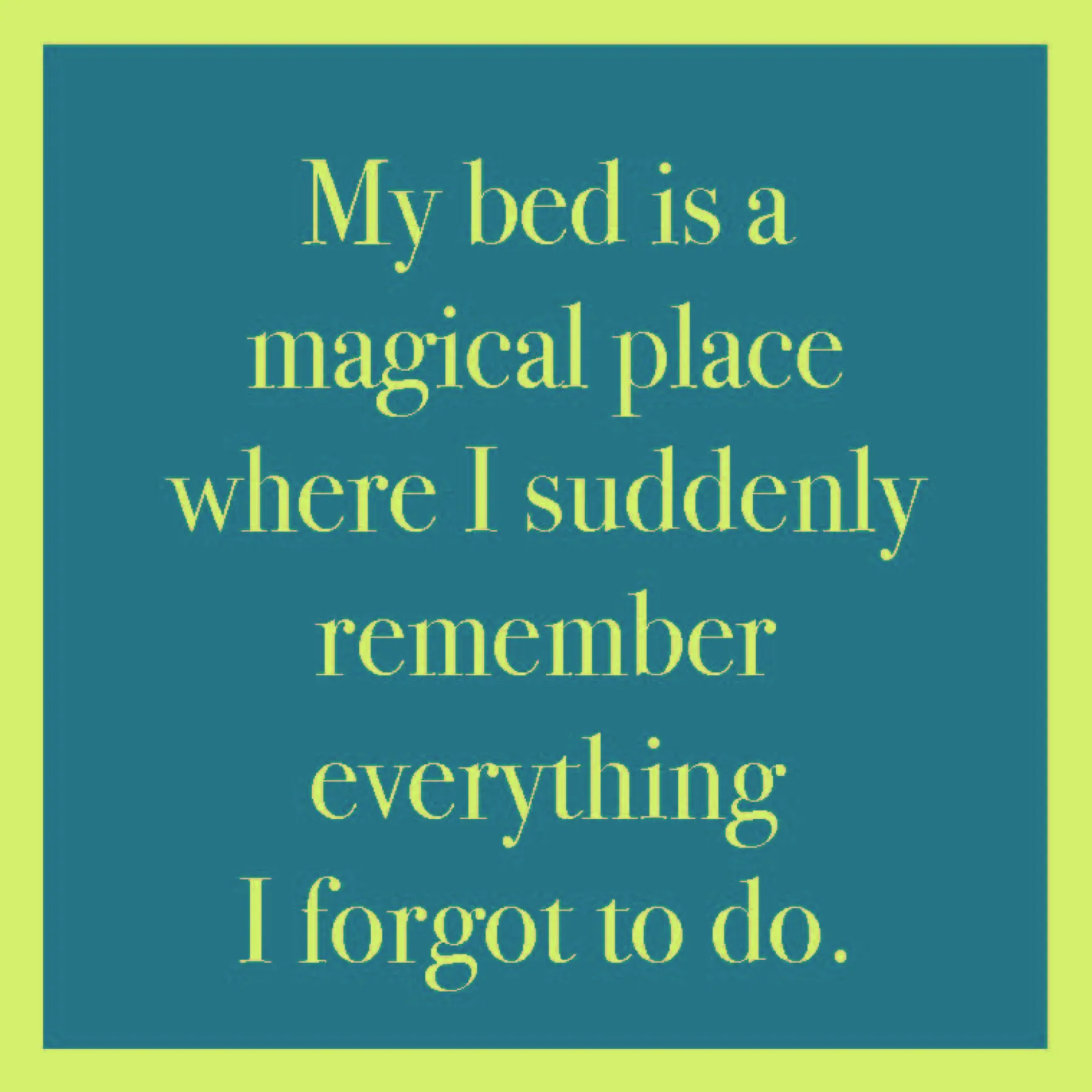 “My bed is a magical place where I suddenly remember everything I forgot to do.”