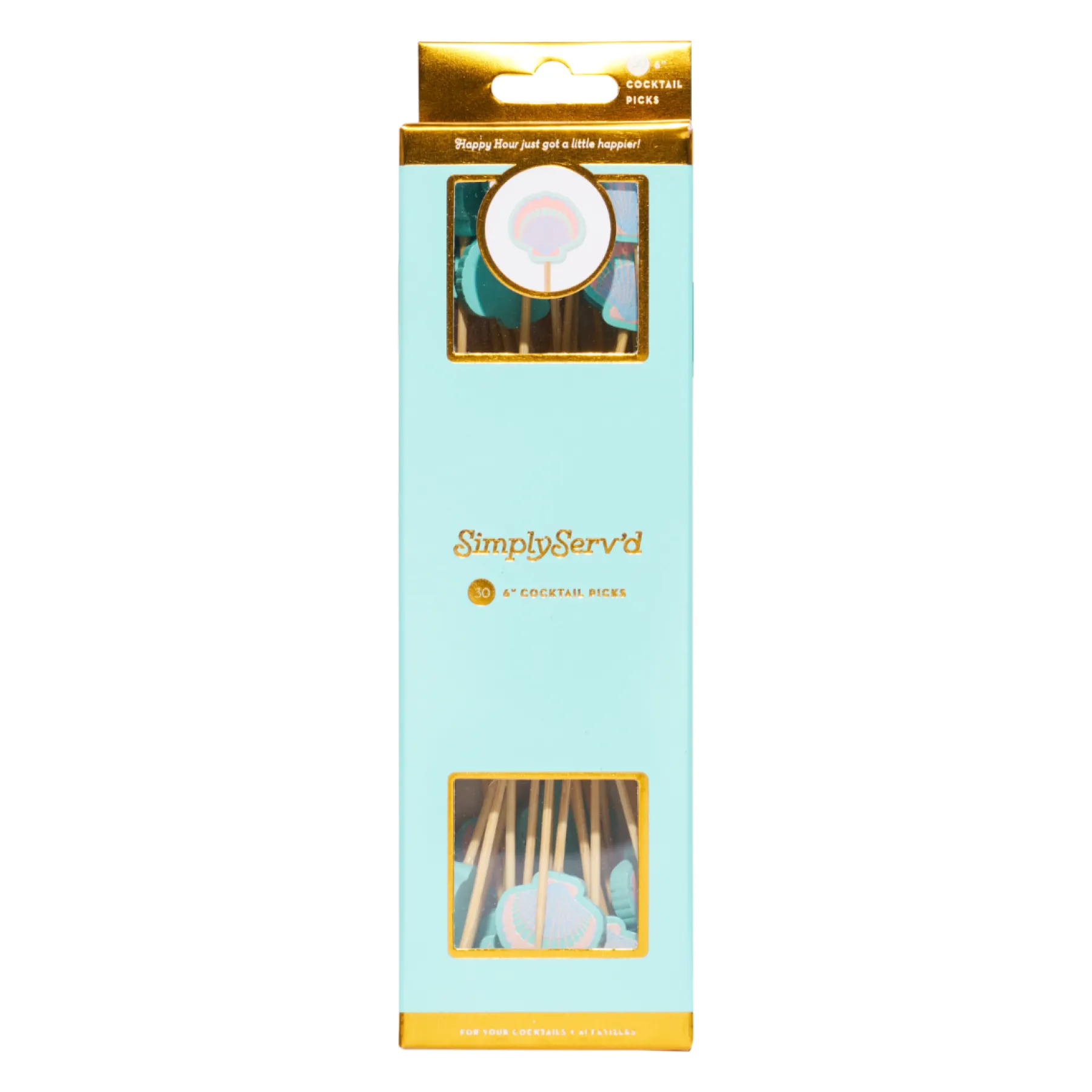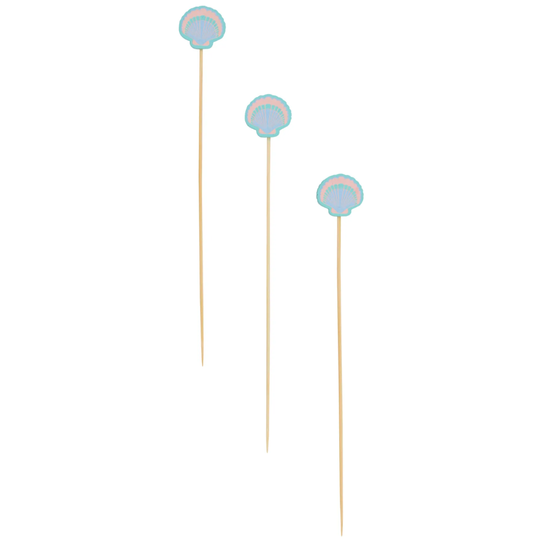 These extra long wooden cocktail picks are topped with a seashell and are the perfect addition to your summer party.
