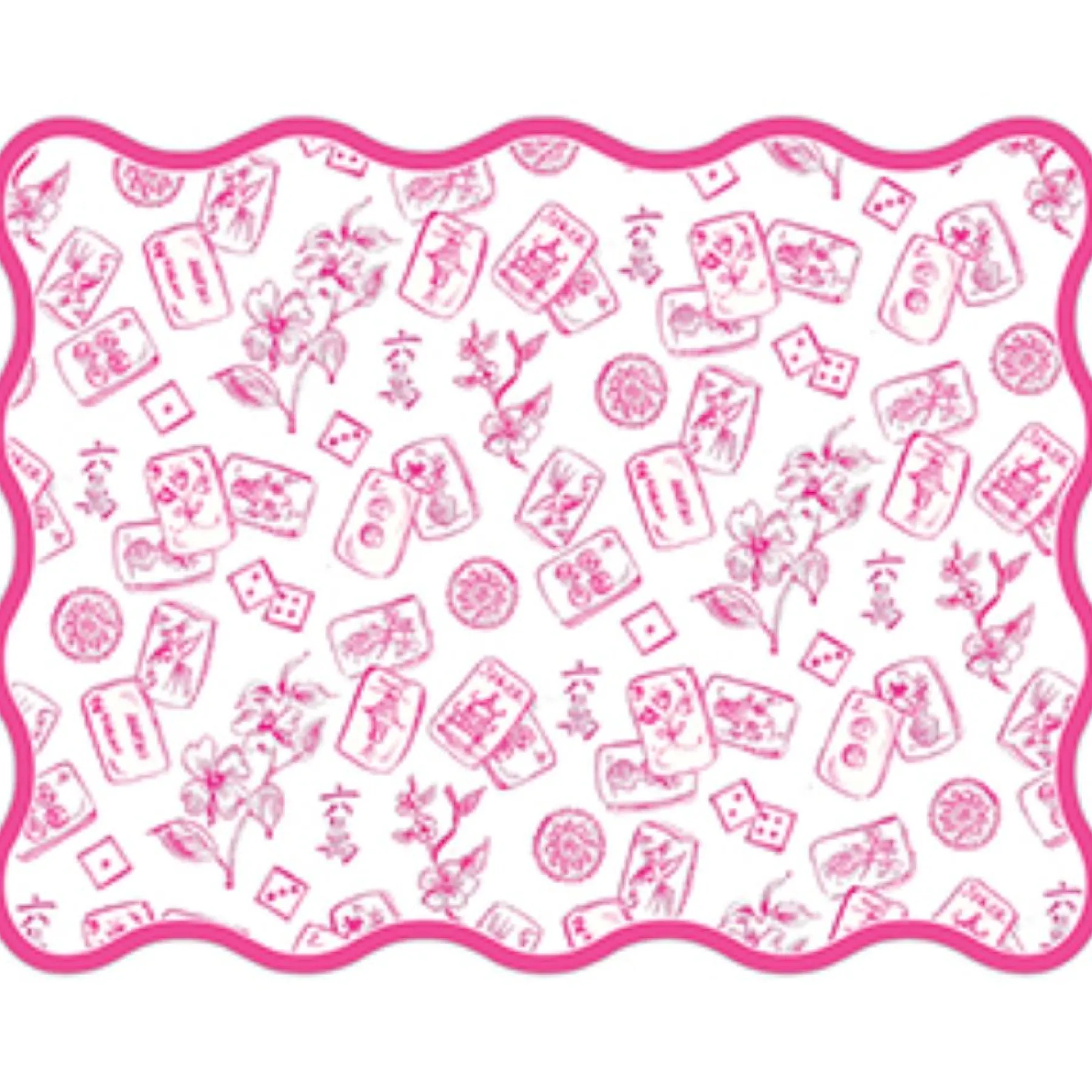 Elevate your table setting with our stylish pink mahjong placemats! Crafted from premium card stock, these placemats add both charm and convenience to your tablescape. The trendy wavy edges bring a modern touch, while the preppy pink mahjong tile design sets the perfect scene for game night.