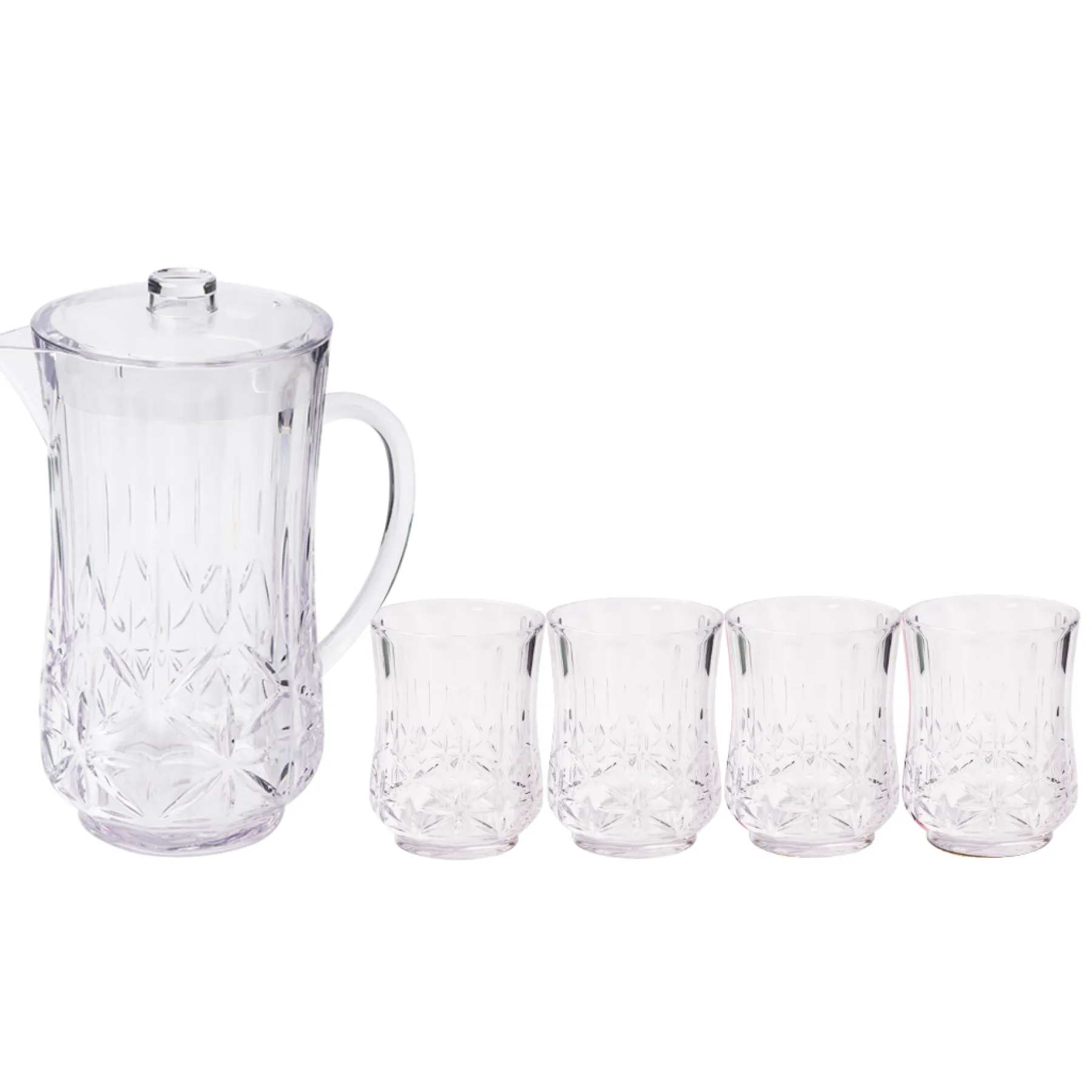 Say goodbye to broken glass! This classic pitcher and tumbler have the look and feel of fine china but is crafted from shatterproof, BPA-free plastic. Your guests will be amazed that it’s not real glass. Plus, it’s top-rack dishwasher safe and won’t turn cloudy like other plastic cups often do.