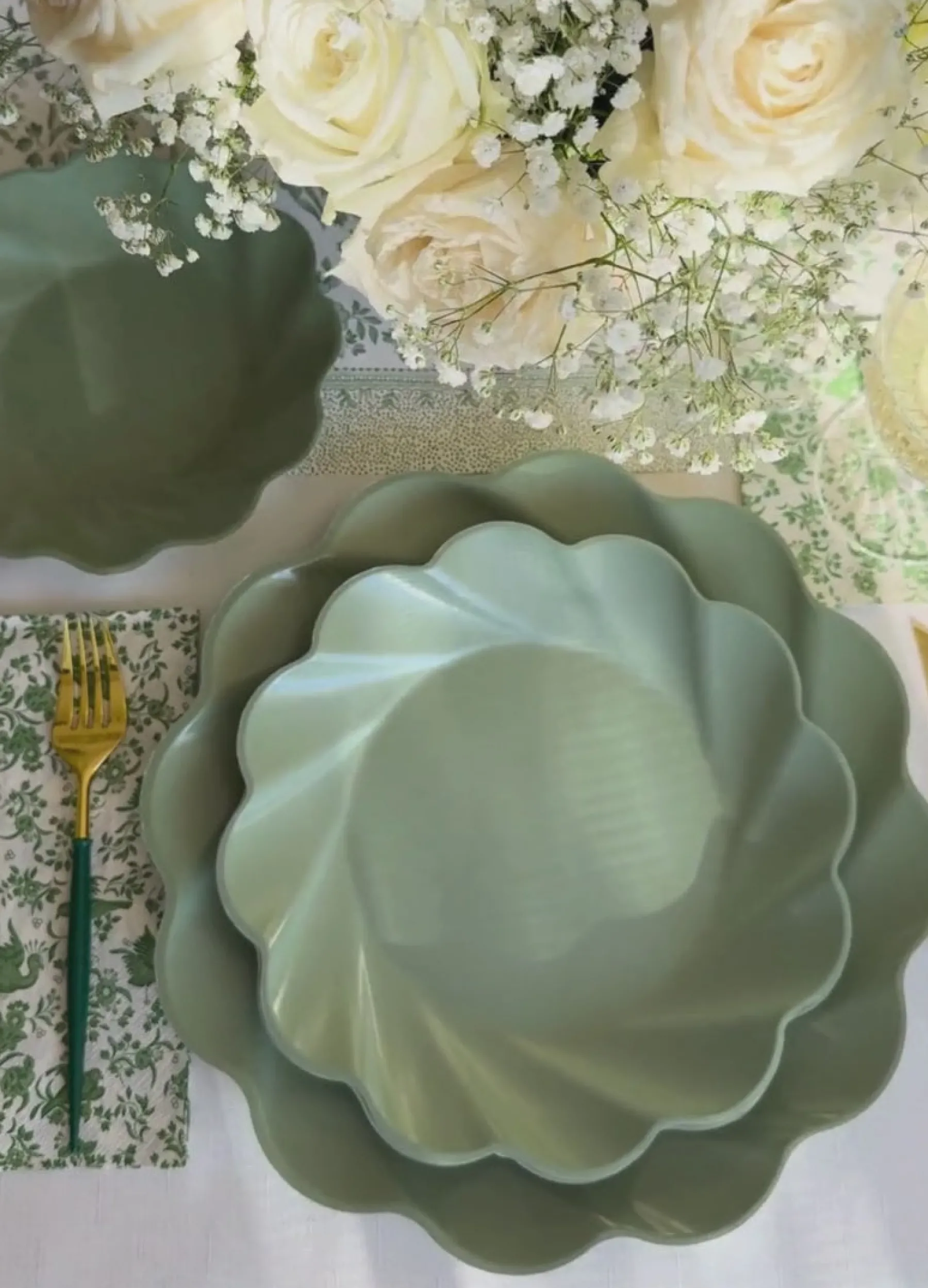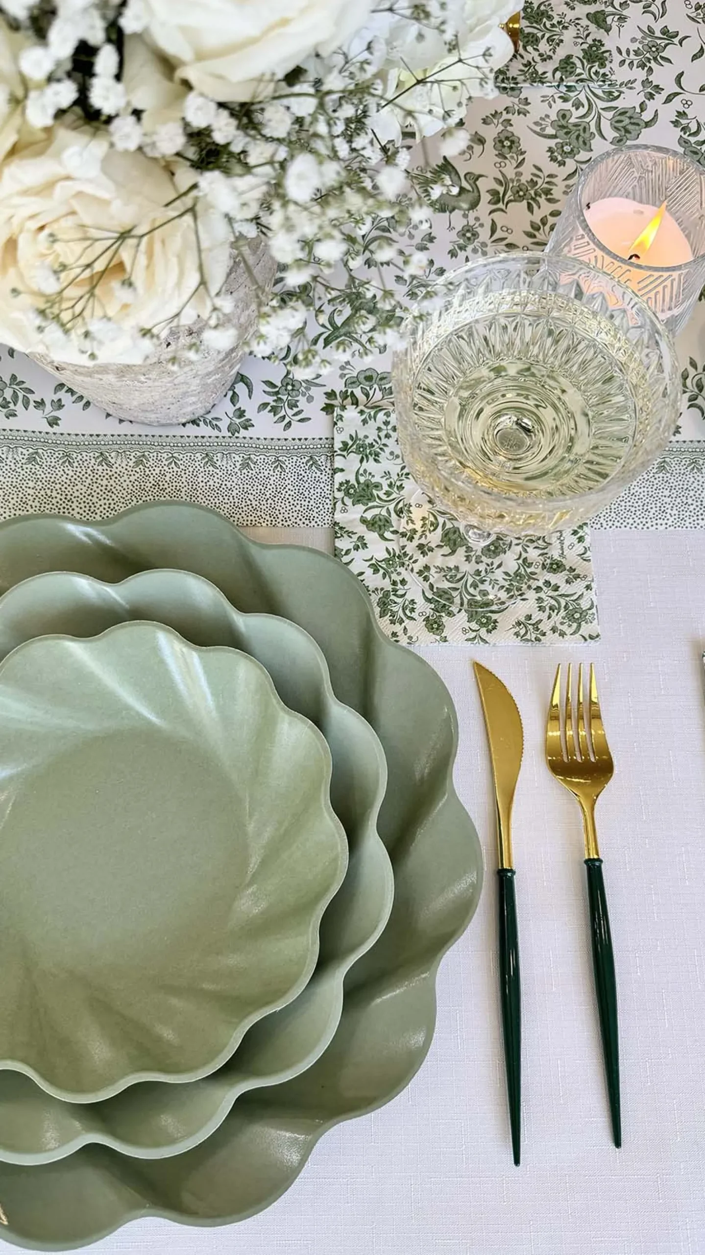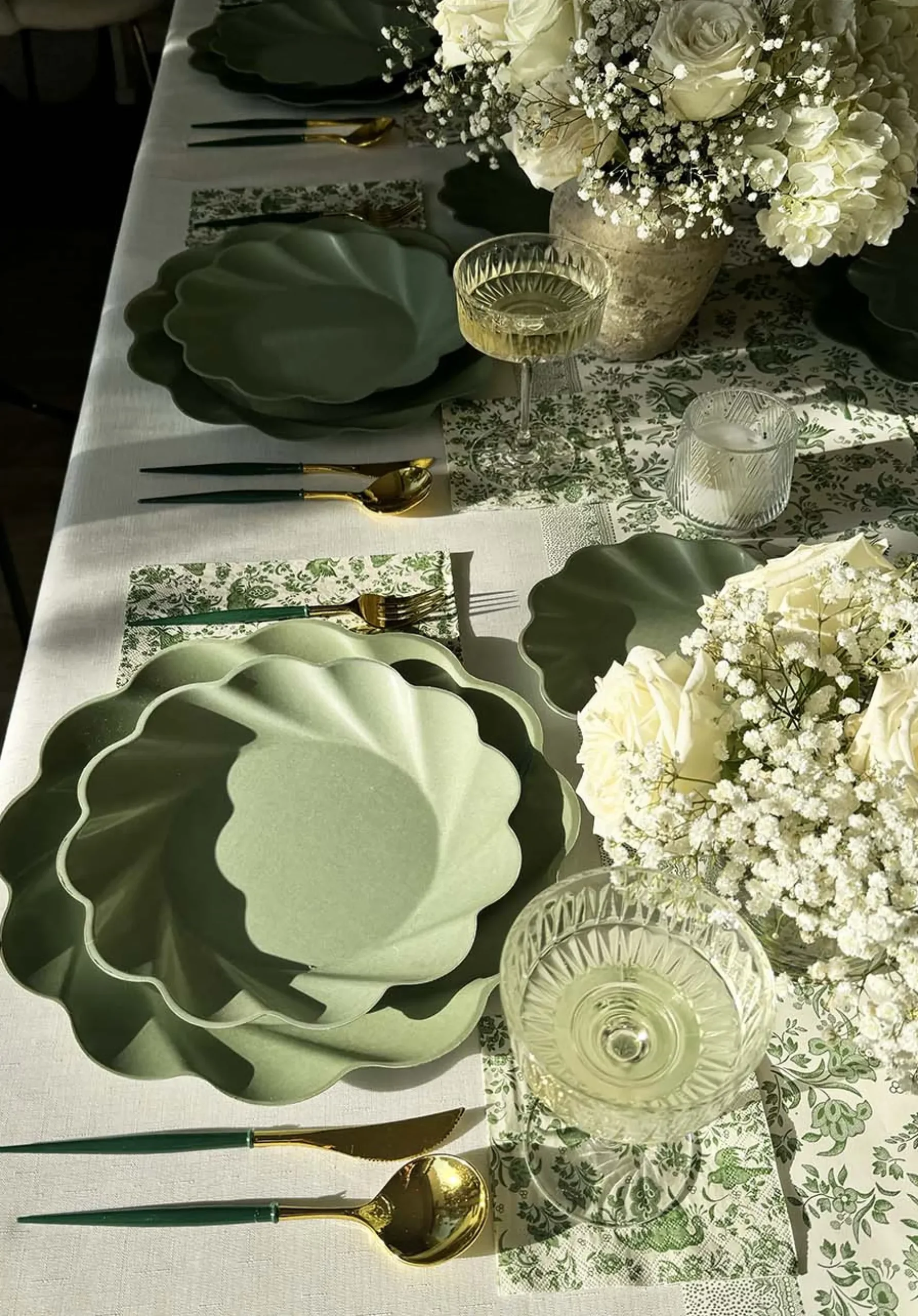 Elevate your holiday table into a professional tablescape. These sage colored plates are made of natural and biodegradable bamboo fiber making them incredibly sturdy and heavy-duty. Coupled with their beautiful scalloped edges, these high quality plates are unlike any other disposable plates you’ve encountered before. Your guests will not believe this Instagrammable set up is disposable and Earth friendly! A curated party-in-a-box, with everything you need to effortlessly create a professional, disposable, tablescape.