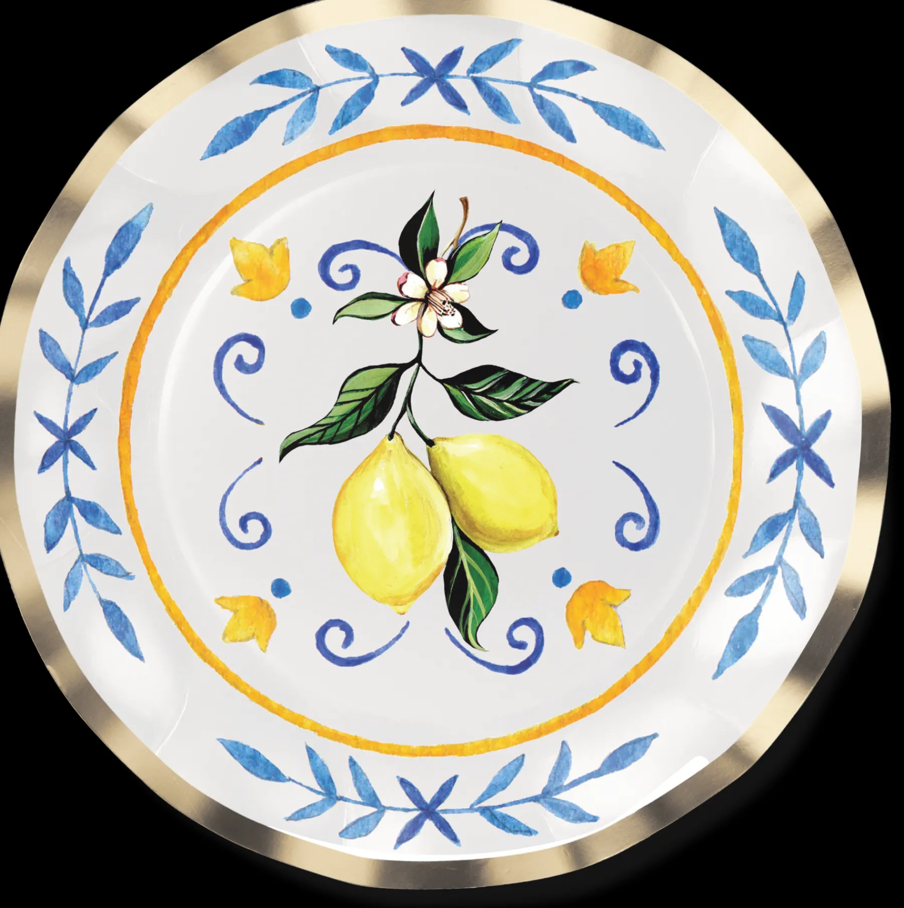 These stunning paper plates will make you want to host a party at the first chance you get! These ruffled foil edge plates feature an image of lemons and an intricate blue pattern on a white background! Add a touch of elegance to your holiday gatherings! Impress your guests with these perfect pieces. Your guests will not believe that these are paper plates! Pairs beautifully with our Bella plastic cutlery, matching napkins, paper baking cups, and party picks!