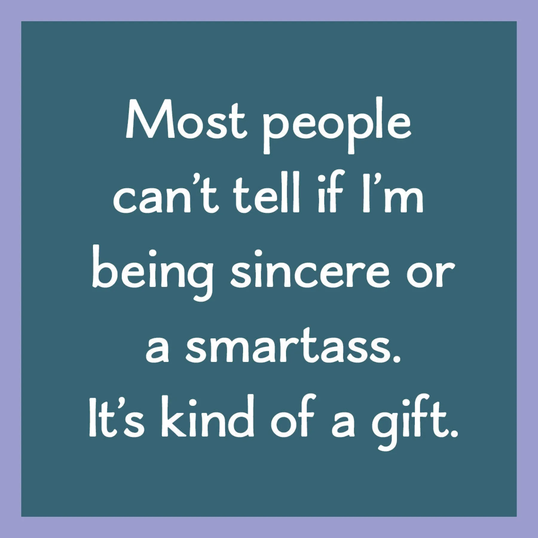 “Most people can’t tel if I’m being sincere or smartass. It’s kind of a gift.”