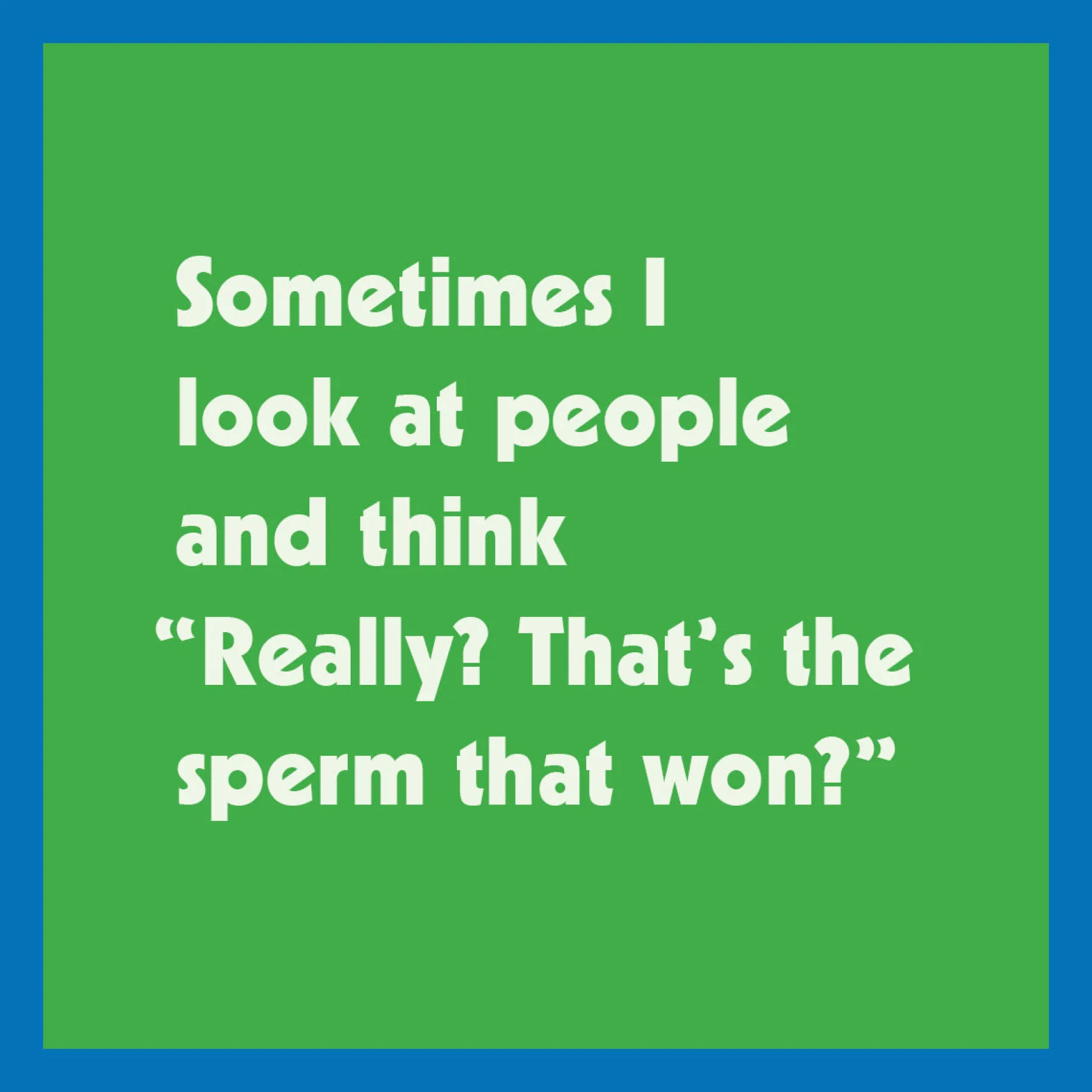 “Sometimes I look at people and think “Really? That’s the sperm that won?”