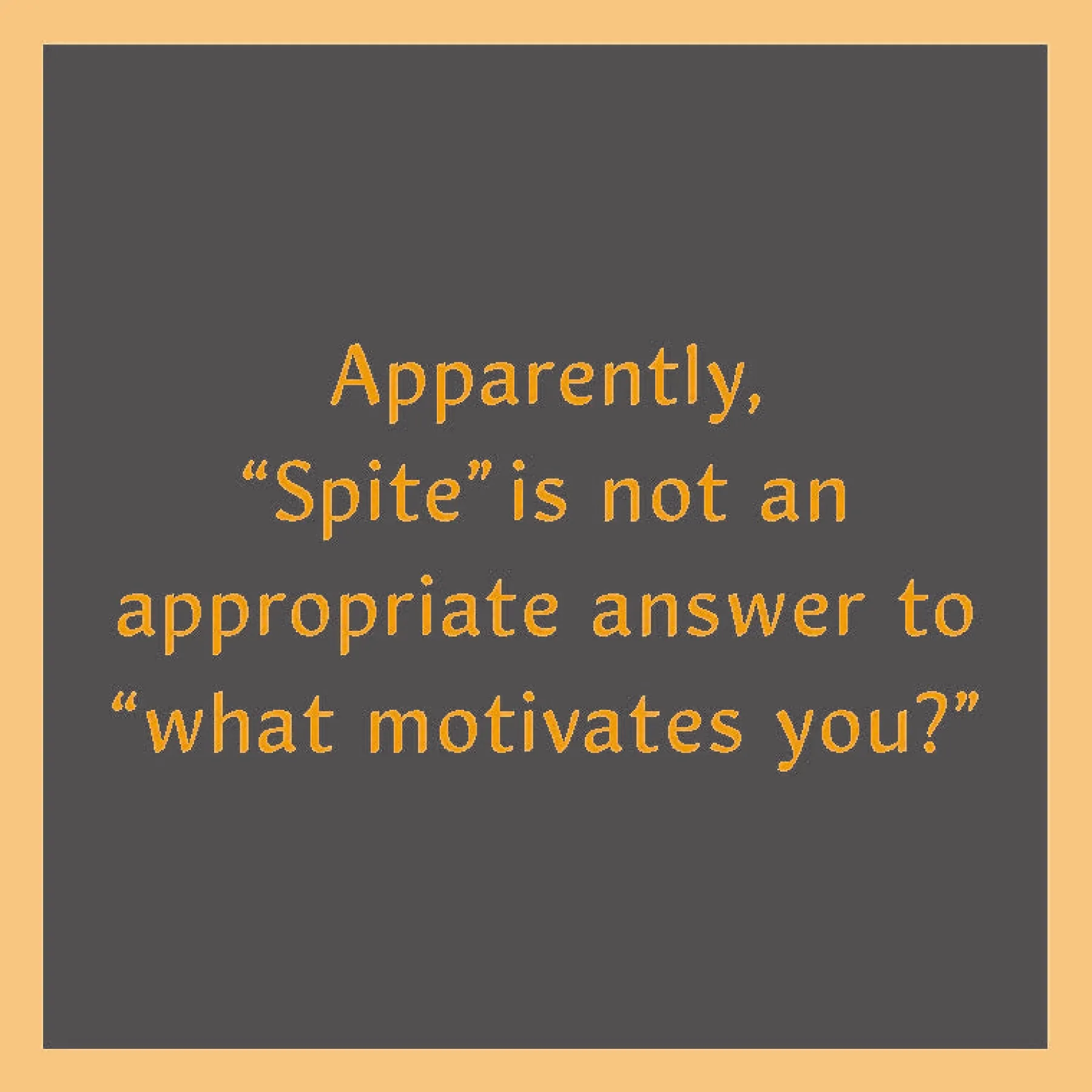 Apparently, “spite” is not an appropriate answer to “what motivates you?”