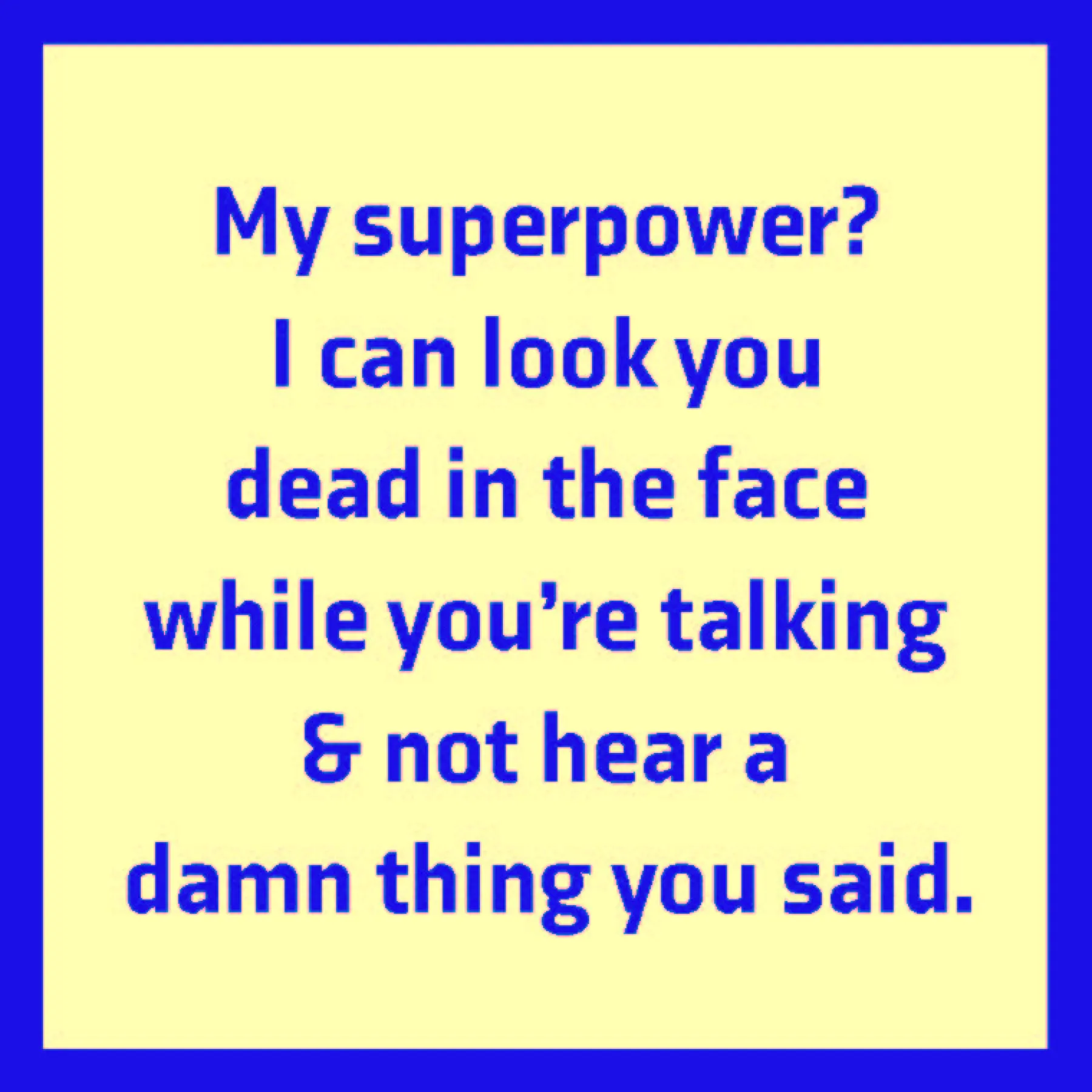 “My superpower? I can look you dead in the face while you’re talking & not hear a damn thing you said.”