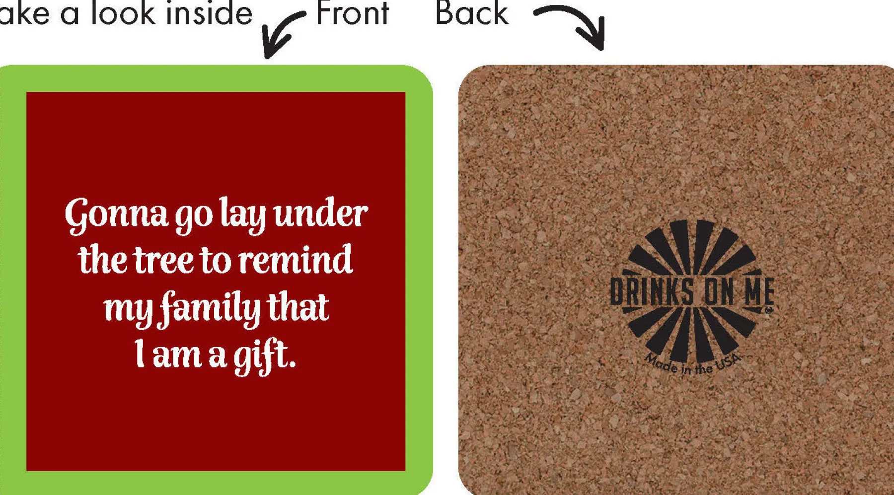 The Book volume 3: Holiday collection is filled with 40 oversized paper Holiday coasters to tickle your funny bone. Keep it on your coffee table or tear them out to share with friends and family. They will surely have you Laughing Out Loud with Side Splitting Good Cheer! 6″x6″ hardcover