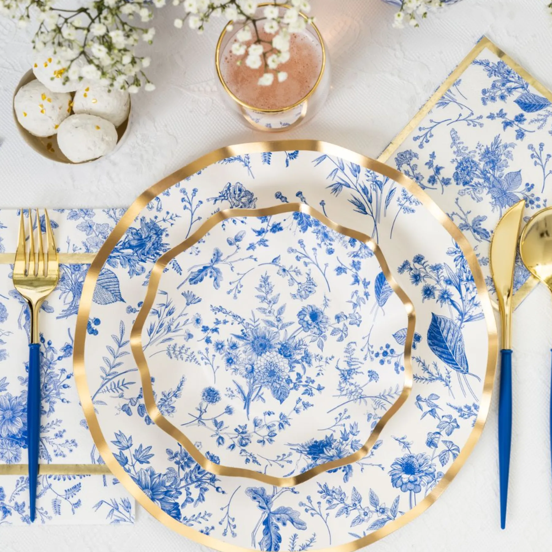 - Color: White and Blue with a Metallic Gold Rim