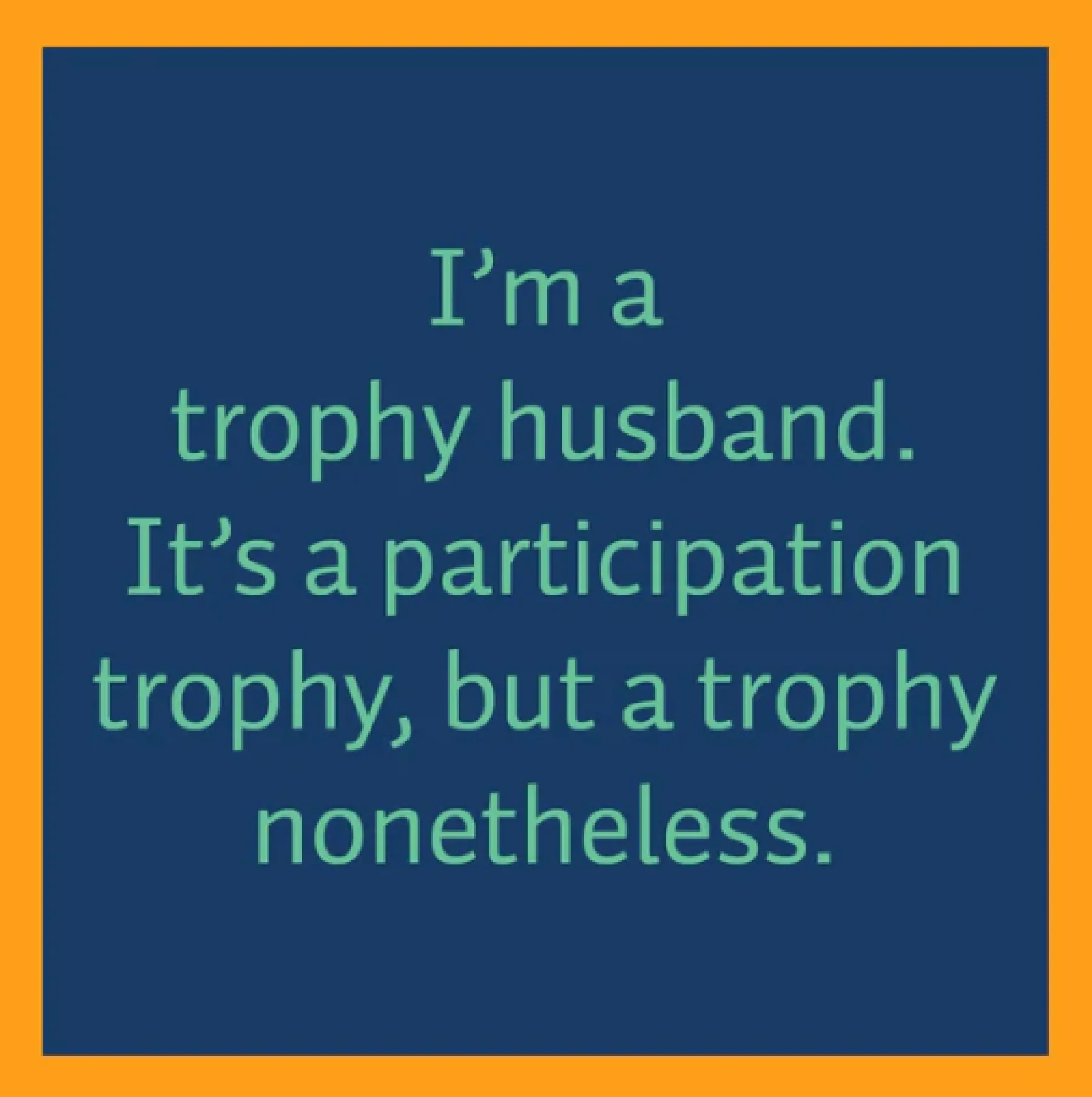 “I’m a trophy husband. It’s a participation trophy, but a trophy nonetheless.”