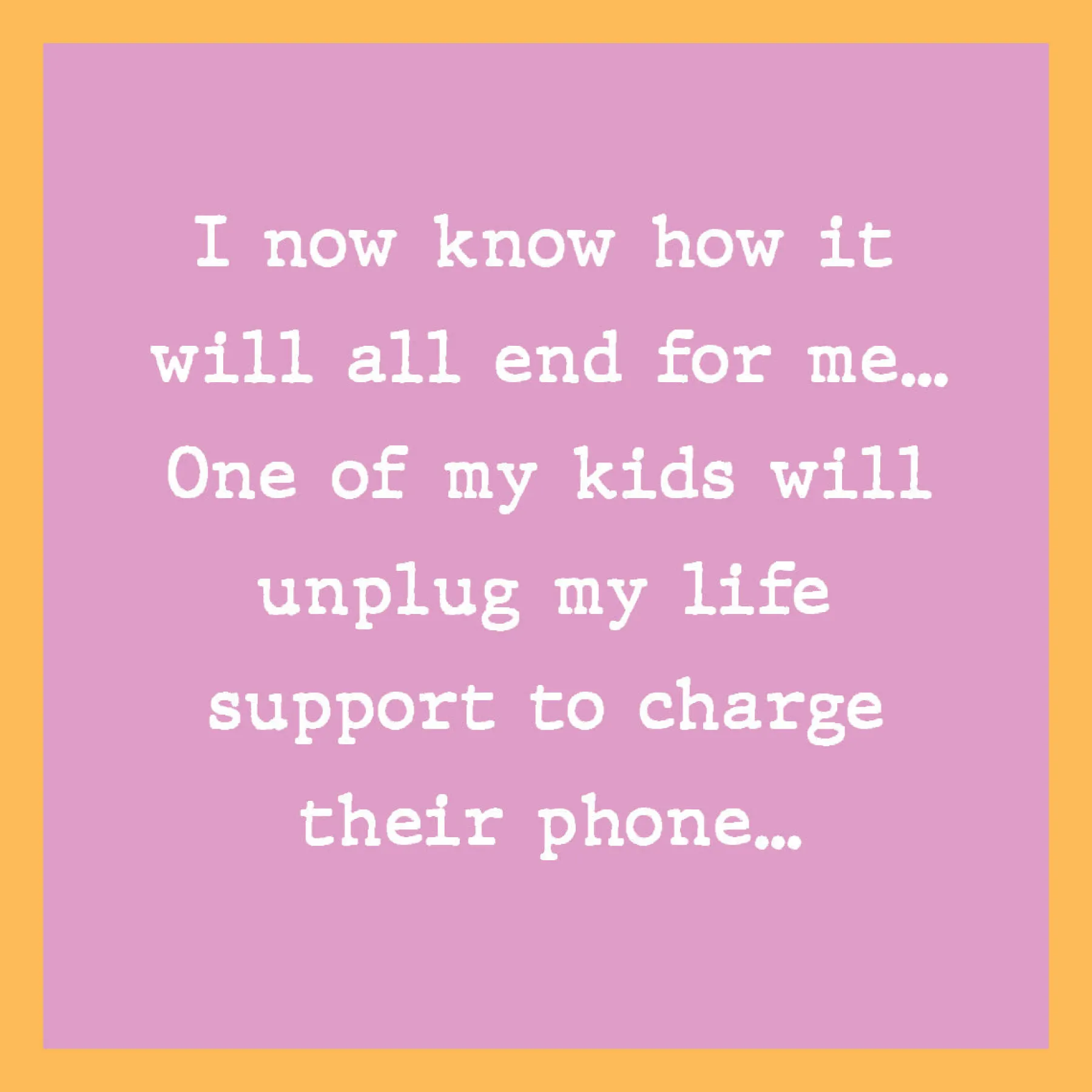 “I now know how it will all end for me… one of my kids will unplug my life support to change their phone”