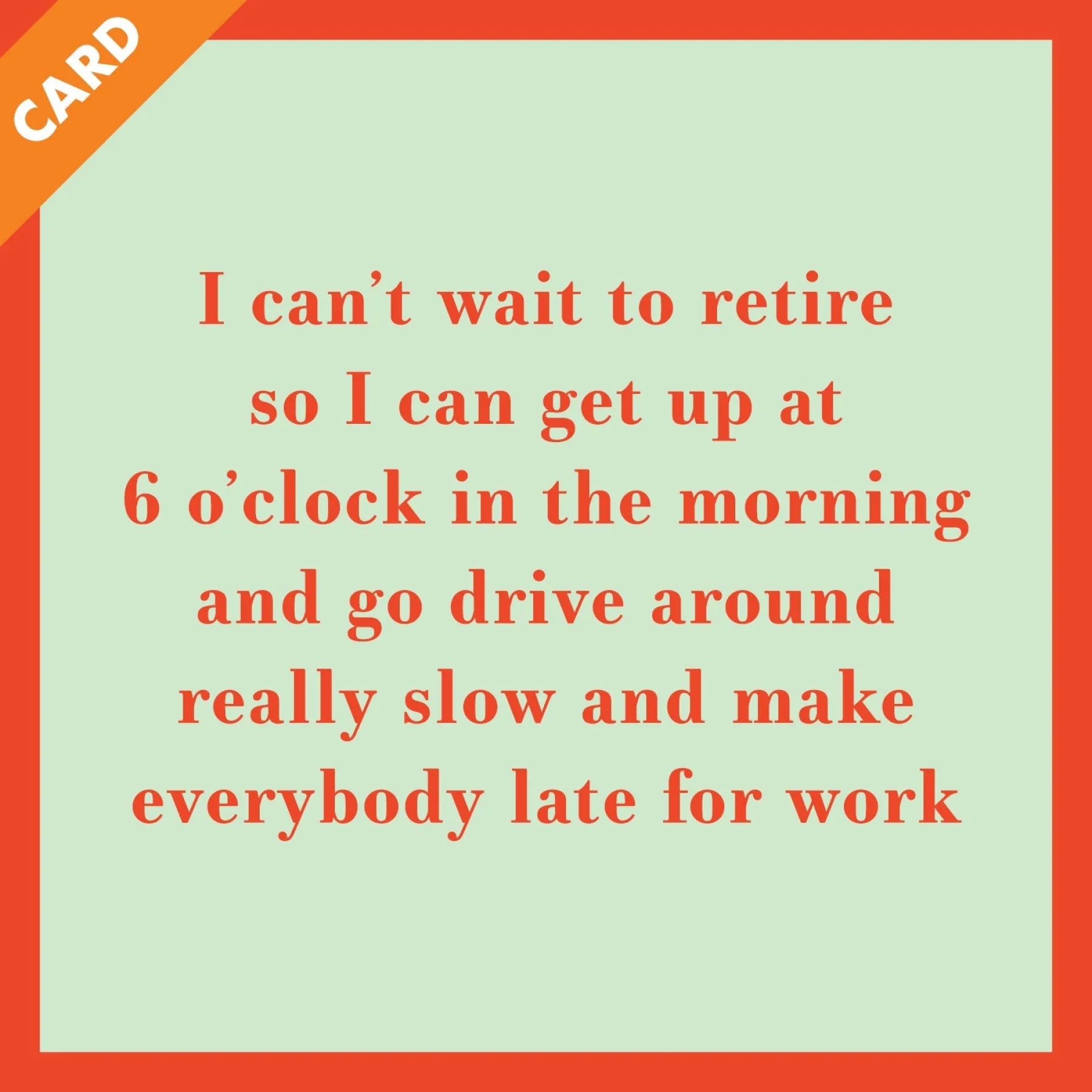 “I can’t wait to retire so I can get up at 6 o’clock in the morning and go drive around really slow and make everybody late for work”